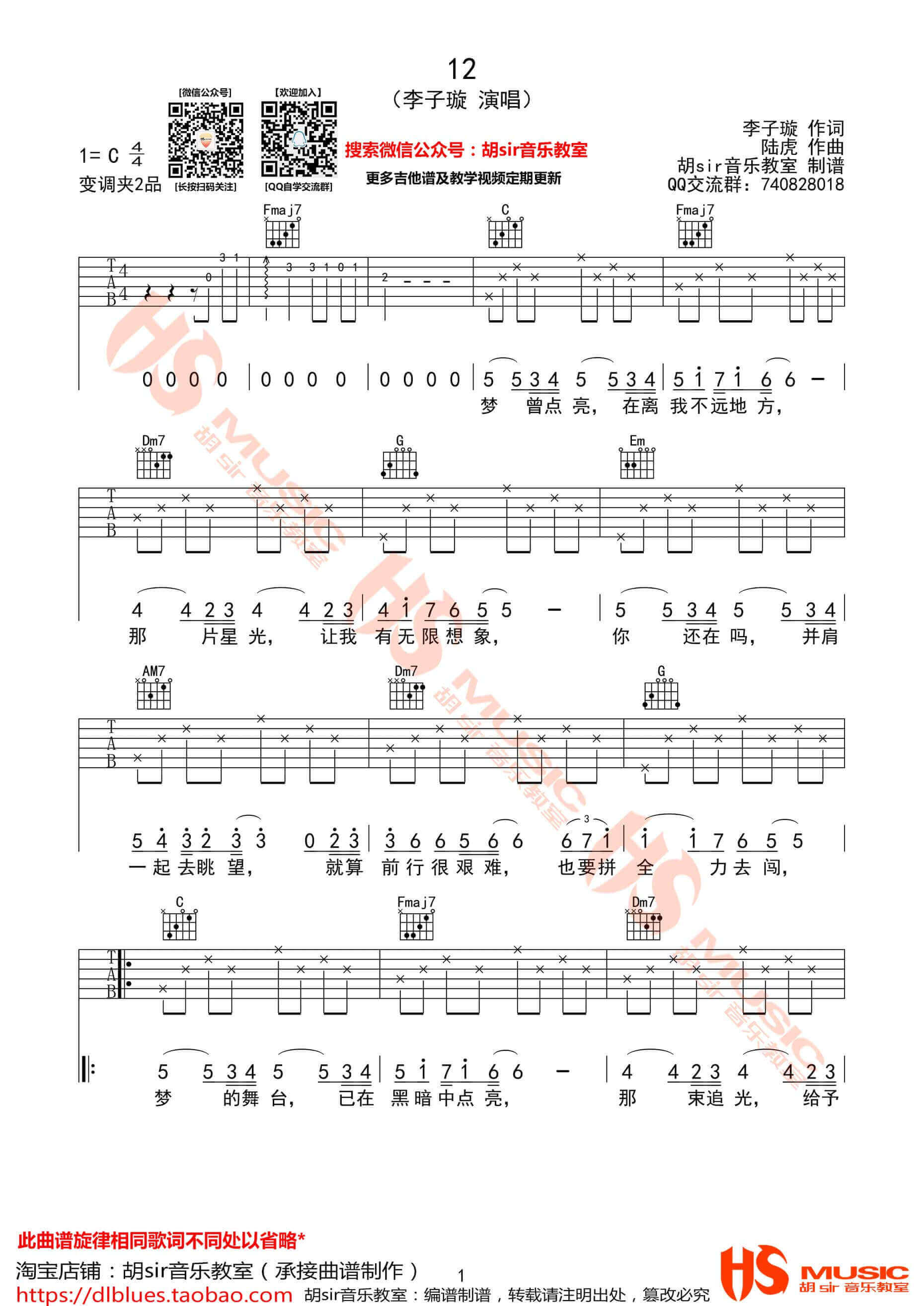 曲谱介绍: 12吉他谱采用了C调指法,由胡sir音乐教室编排配完成。《12》这首歌曲是李子璇近日发布的一首新歌,讲述了她在创造101里面一路走来的心路历程。这首歌由李子璇亲自操刀作词,融入了她满腔的感情,极具个人魅力,因此也更加能打动听者的内心,引发情感的共鸣。12对于李子璇来说是一个特殊的数字。在创造101的总决赛中,她是以12名的成绩出道的,同时,这首歌里充斥着她对于美好未来的向往和期待。另外,这首偏食吉他谱也超级好听,小伙伴们有福啦,还不去练起来?