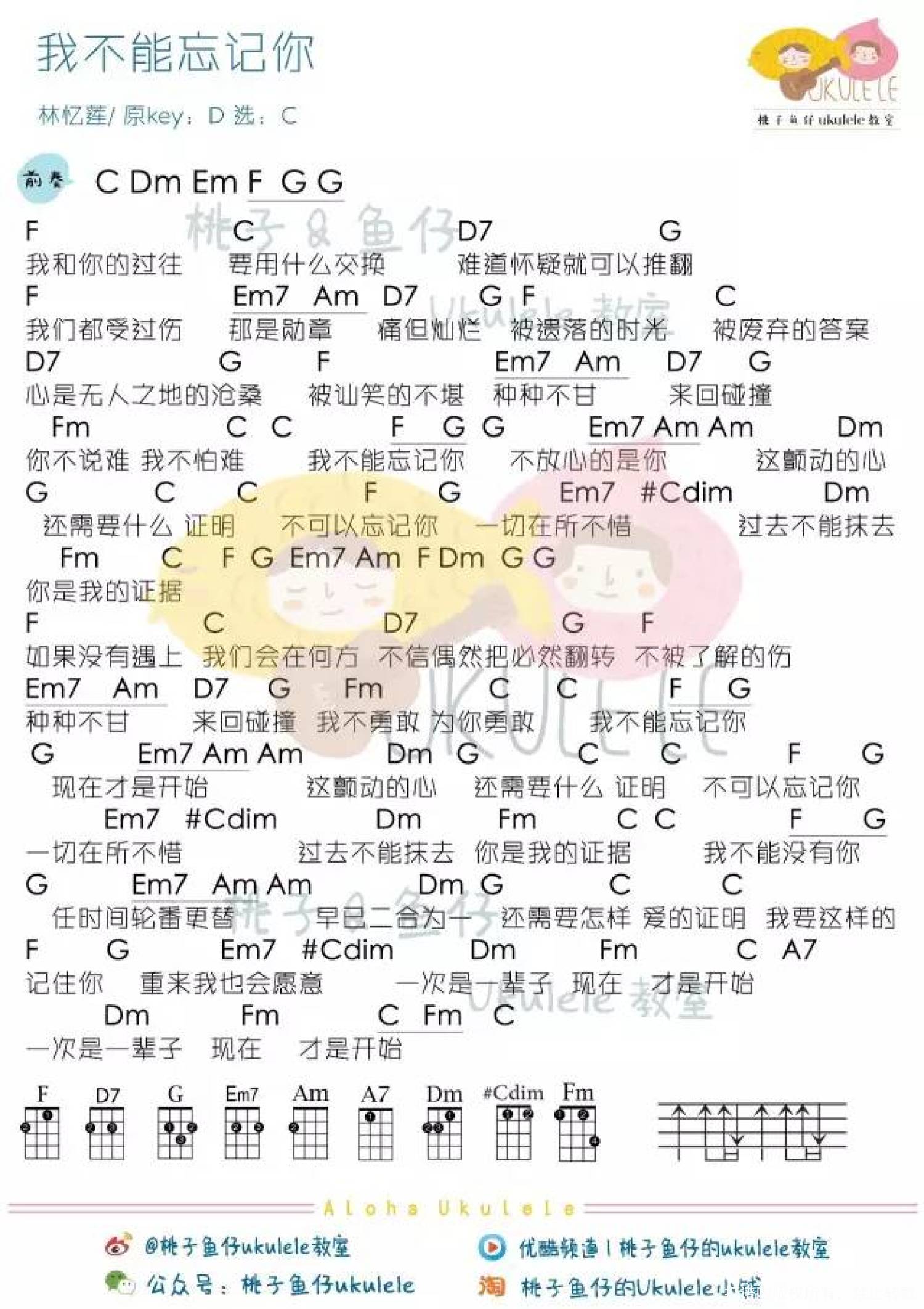 曲谱介绍: 林忆莲《我不能忘记你》_C调尤克里里谱