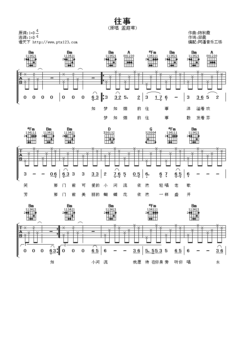 曲谱介绍: 往事吉他谱采用了D调指法,由阿潘音乐工场编配完成。另外一首,蒙古人吉他谱也很赞,小伙伴可以愉快的学习起来了。