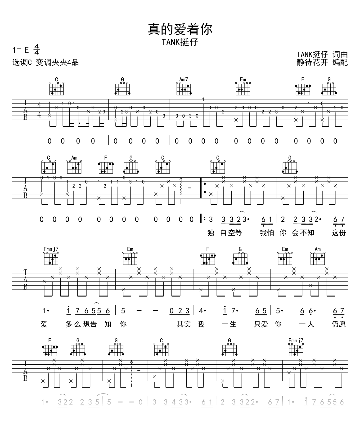 真的爱着你吉他谱 - Tank挺仔 - C调吉他弹唱谱