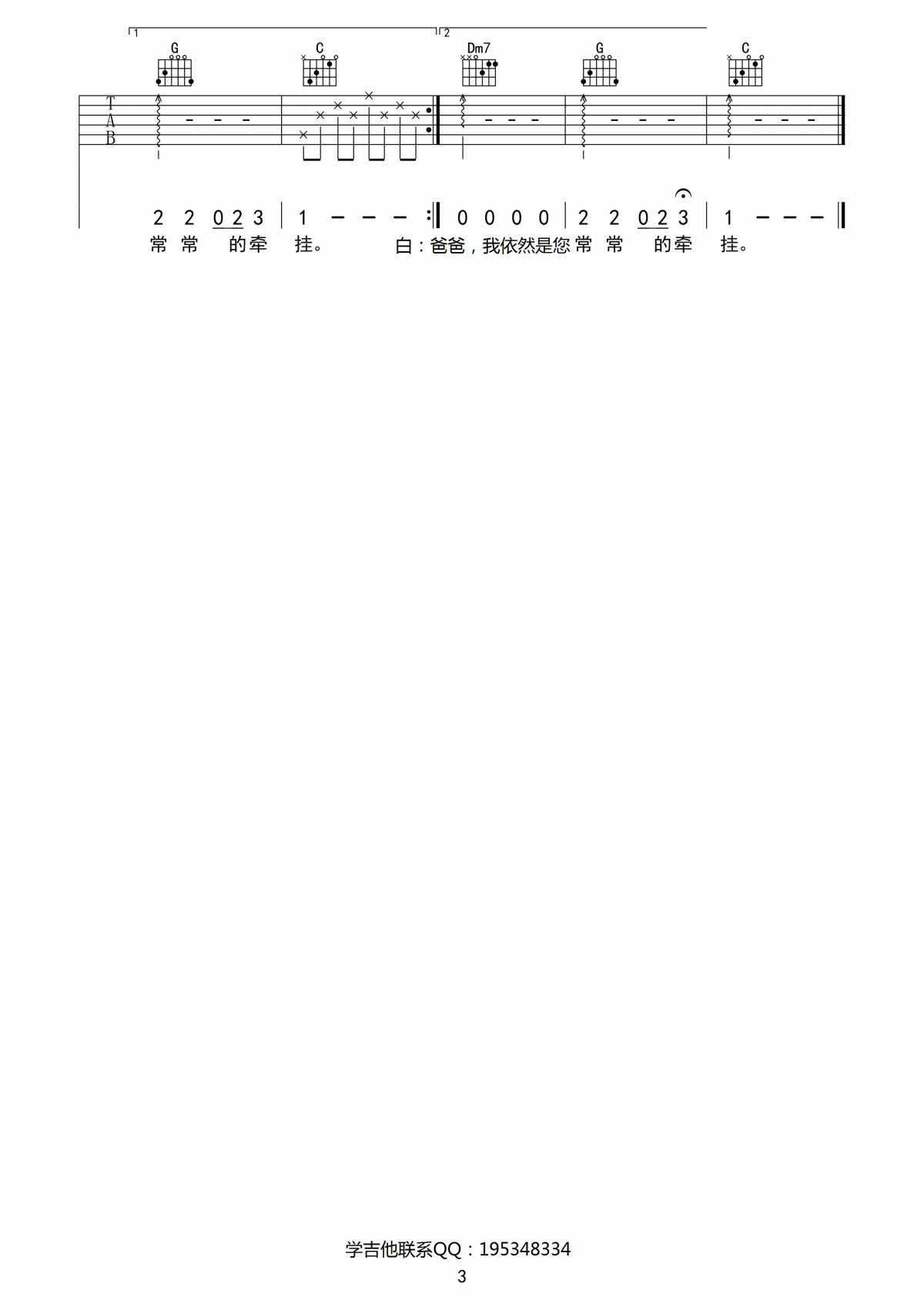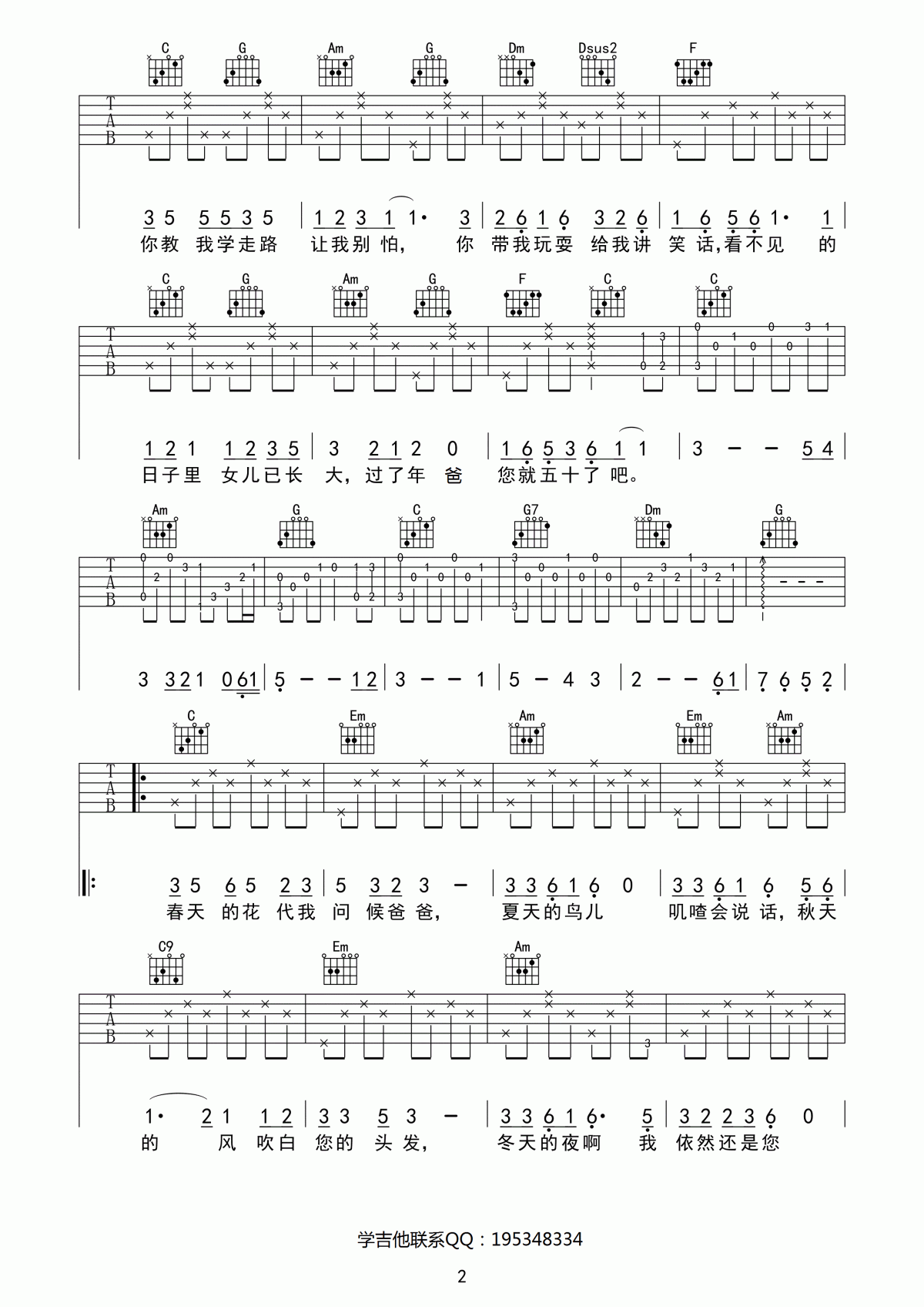 曲谱介绍: 沐阳吉他谱是根据歌手王洋的一首经典歌曲编配的吉他谱。歌曲原调降E调,谱子采用C调指法编配,变调夹夹三品。一首歌颂温暖父爱的歌曲,喜欢的朋友试试哦。和弦非常简单,吉他初学者也比较适合演奏的一首歌曲。琴谱网编辑整理。