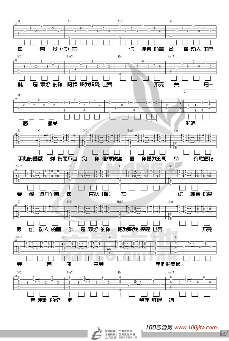 曲谱介绍: 手心的蔷薇吉他谱是根据林俊杰和邓紫棋合唱的一首经典歌曲编配的吉他谱。谱子采用了C调指法编配。旋律优美歌词浪漫。邓紫棋那柔美的声线加上林俊杰的可爱,让这首歌曲最近非常流行。喜欢的朋友弹唱试试哦,谱子采用C调编配比较好弹奏,多加练习和弦就可以掌握哦。琴谱网编辑整理。