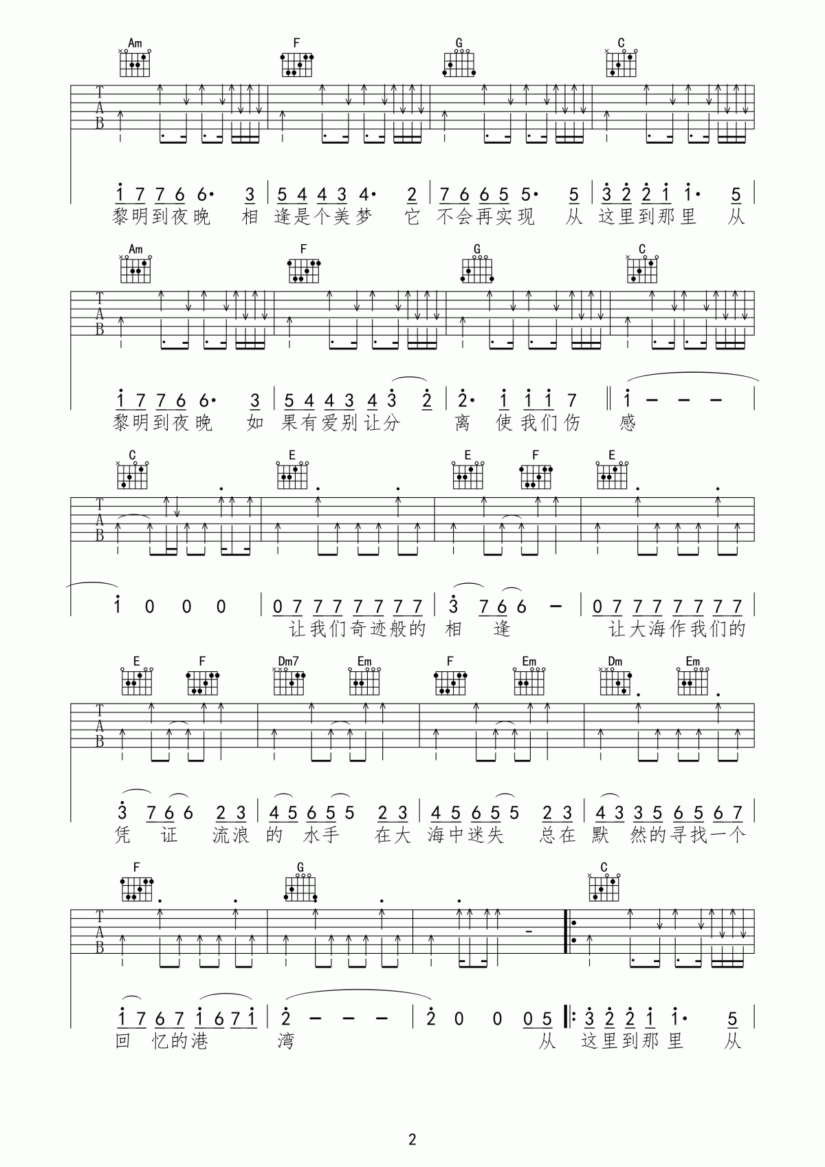 曲谱介绍: 从这里到那里吉他谱是根据歌手吴涤清的一首歌曲编配的吉他谱。采用C调原版编配。陈彼得作曲的一首歌曲。喜欢这首歌曲的朋友试试哦,比较容易弹奏的歌曲,注意后半部分的扫弦,琴谱网编辑整理。