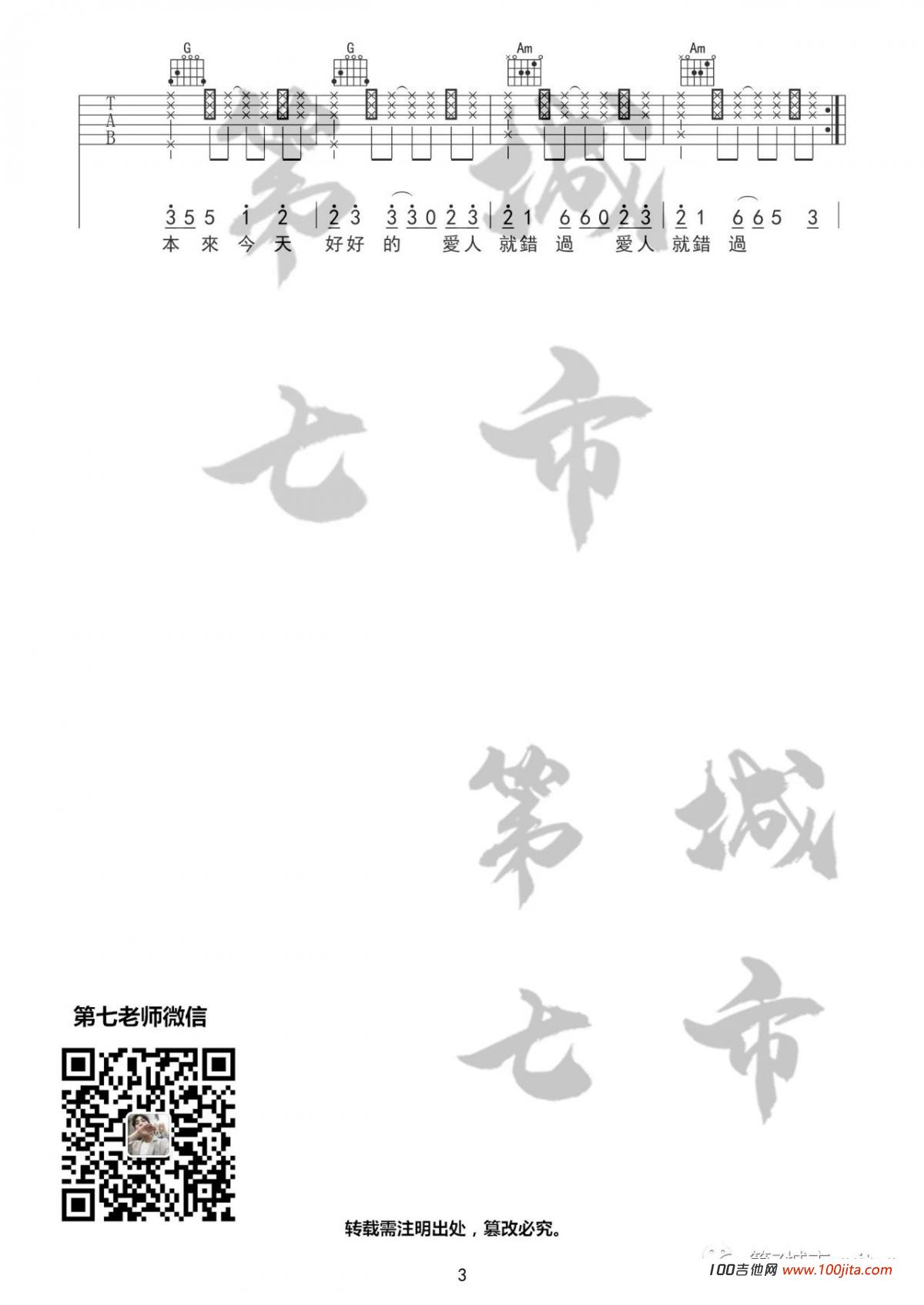曲谱介绍: 《爱人错过》吉他谱是根据告五人组合的一首经典歌曲编配的吉他谱。非常好听的歌曲。歌曲旋律动听歌曲轻松中带点忧伤。在告五人精彩的弹唱中歌曲越发的动听。喜欢的朋友记得弹唱试试哦。谱子是白熊音乐编配。网上的谱子大多是付费的,这版谱子和弦编配还是不错的。大家弹唱的时候注意谱子的和弦和节奏型哦,新增六线谱吉他专家版、和弦版,琴谱网编辑整理。