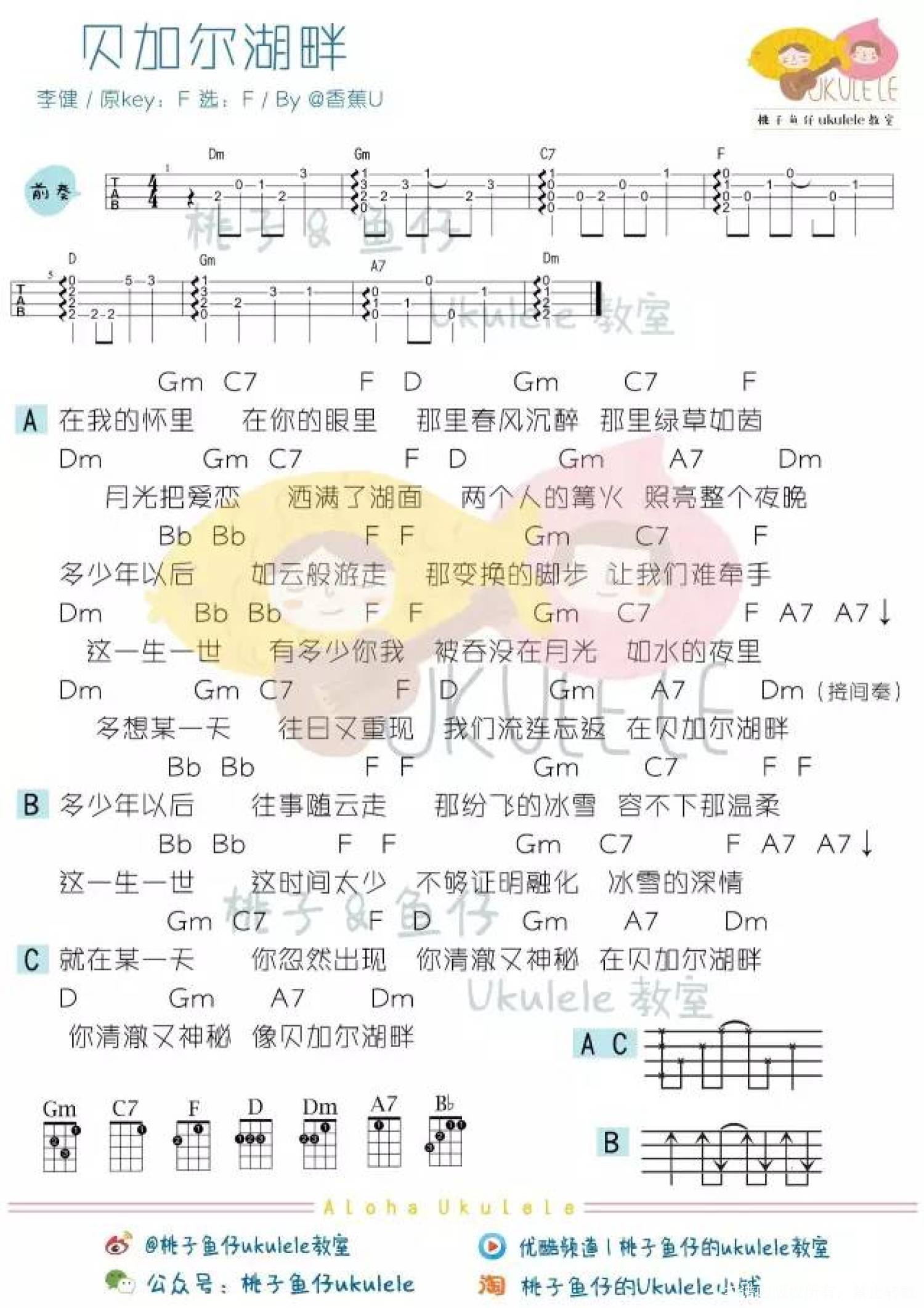 曲谱介绍: 李健《贝加尔湖畔》_F调尤克里里谱