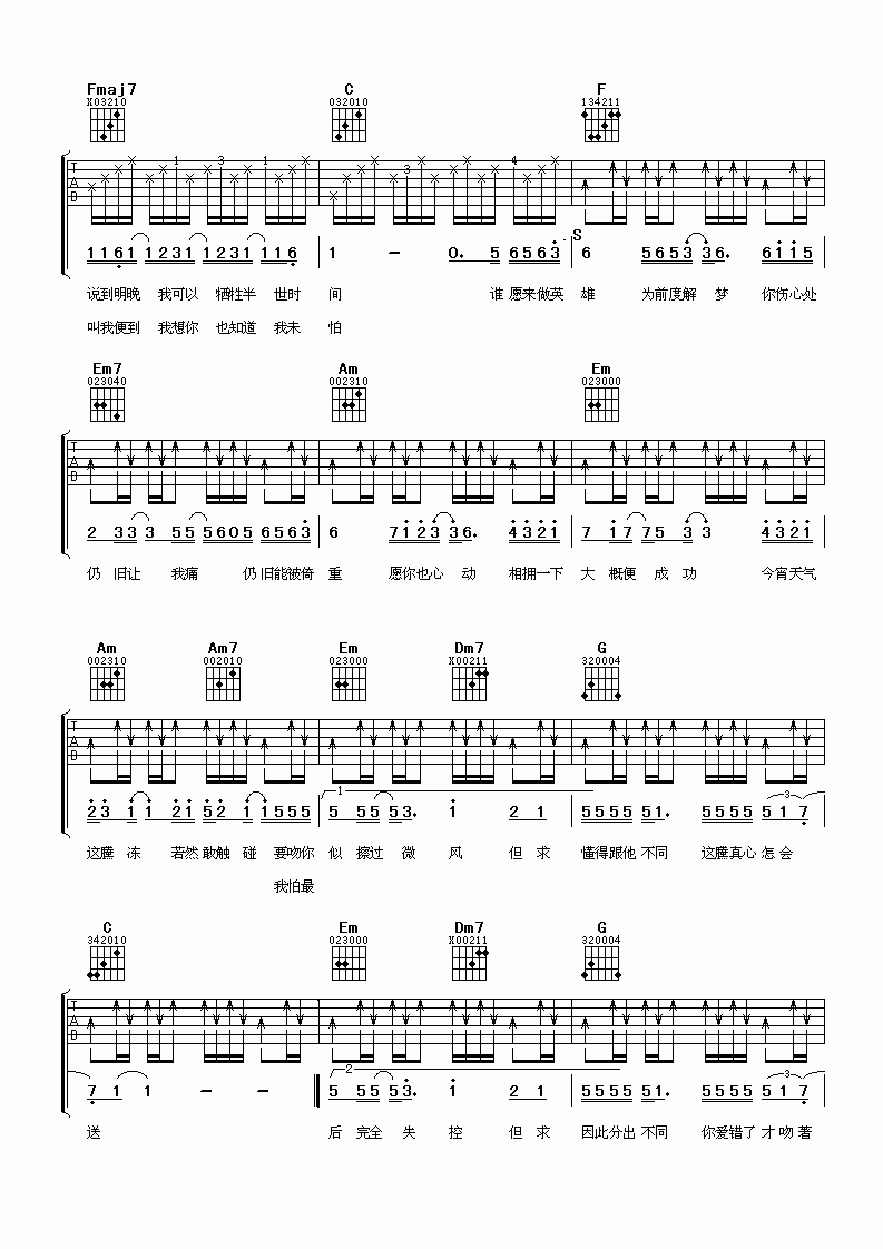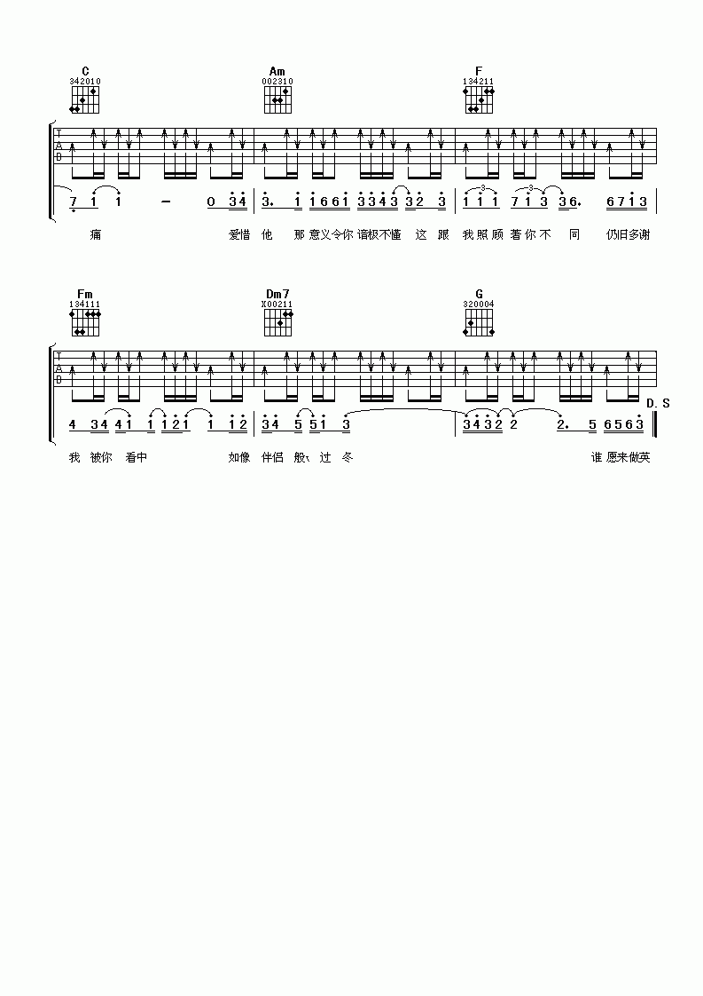曲谱介绍: 歌曲原调降D调谱子采用C调 指法编配。非常不错的一首爱情歌曲,张耀威用自己独特的演唱征服了听众。喜欢的朋友弹唱一下哦。本谱子共三张高清图片六线谱。琴谱网编辑整理。