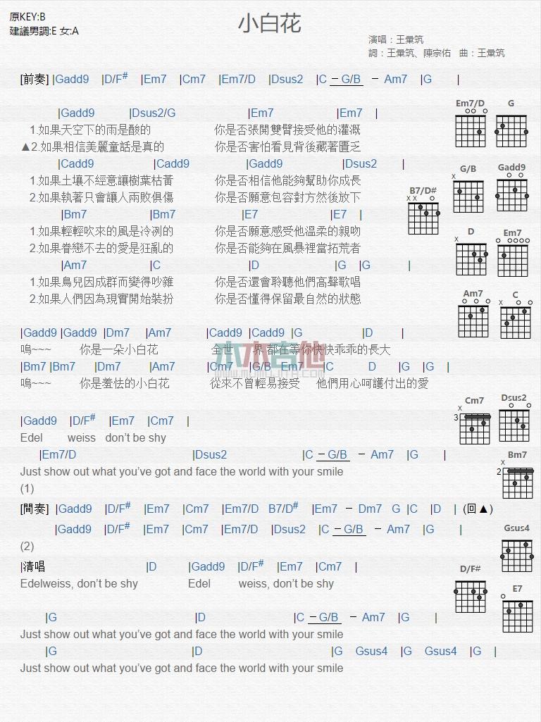 小白花吉他谱 - 王汇筑 - 吉他弹唱谱