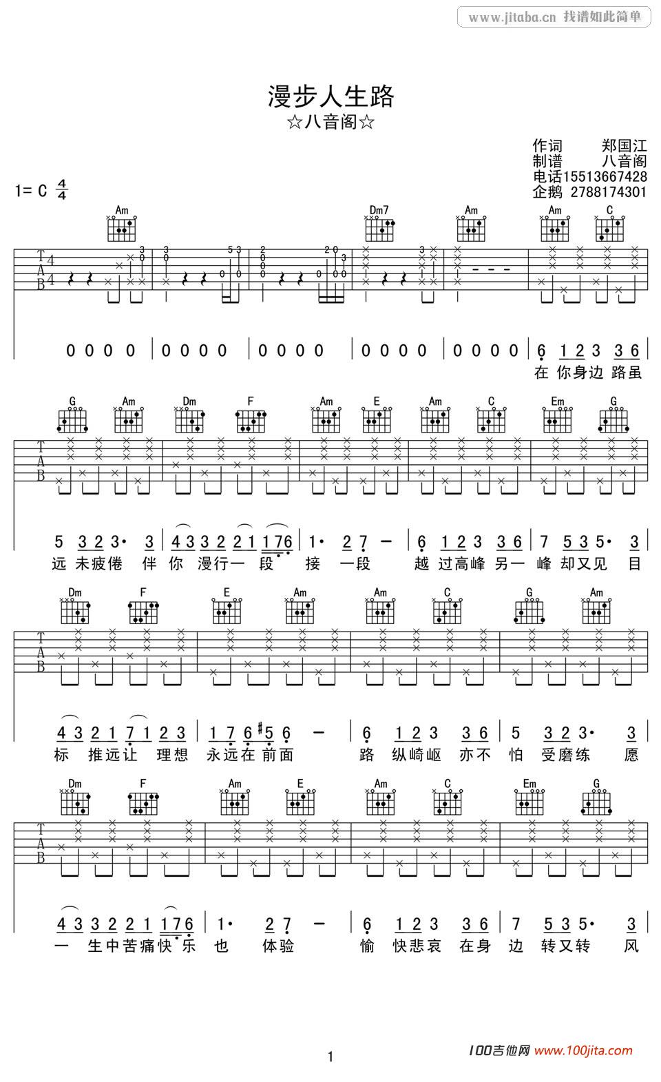 当前位置:琴谱网>吉他弹唱>漫步人生路