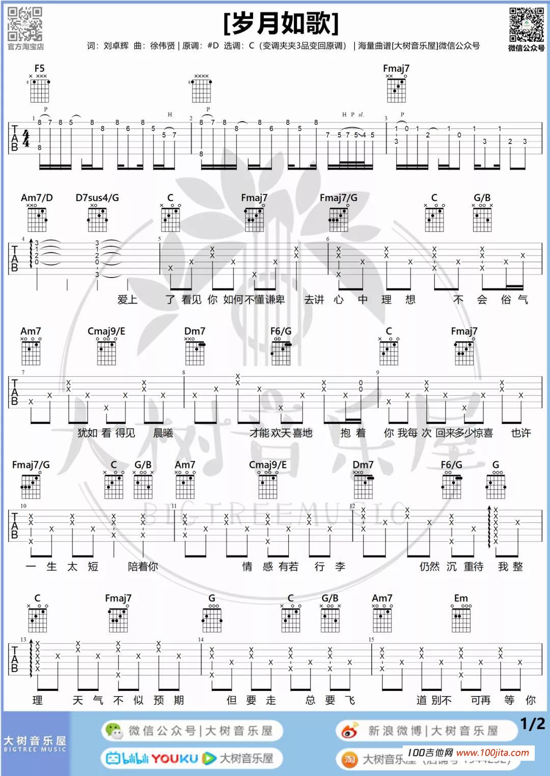 当前位置:琴谱网>吉他弹唱>岁月如歌
