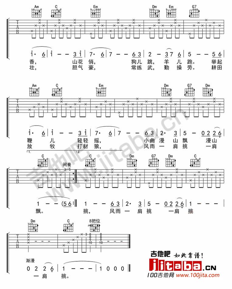 牧羊曲吉他谱 - C调吉他弹唱谱