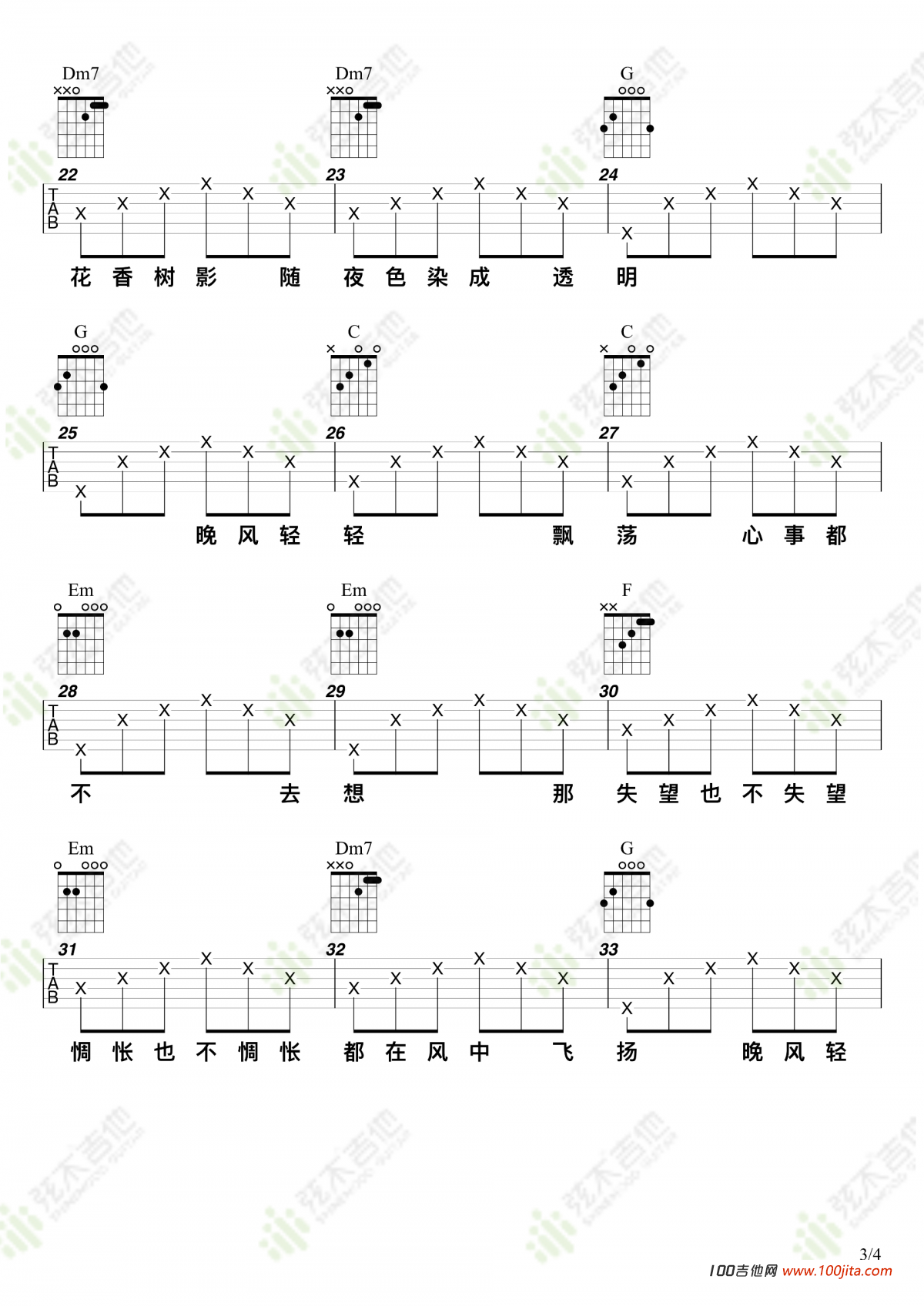 晚风吉他谱 - 陈婧霏 - C调吉他弹唱谱