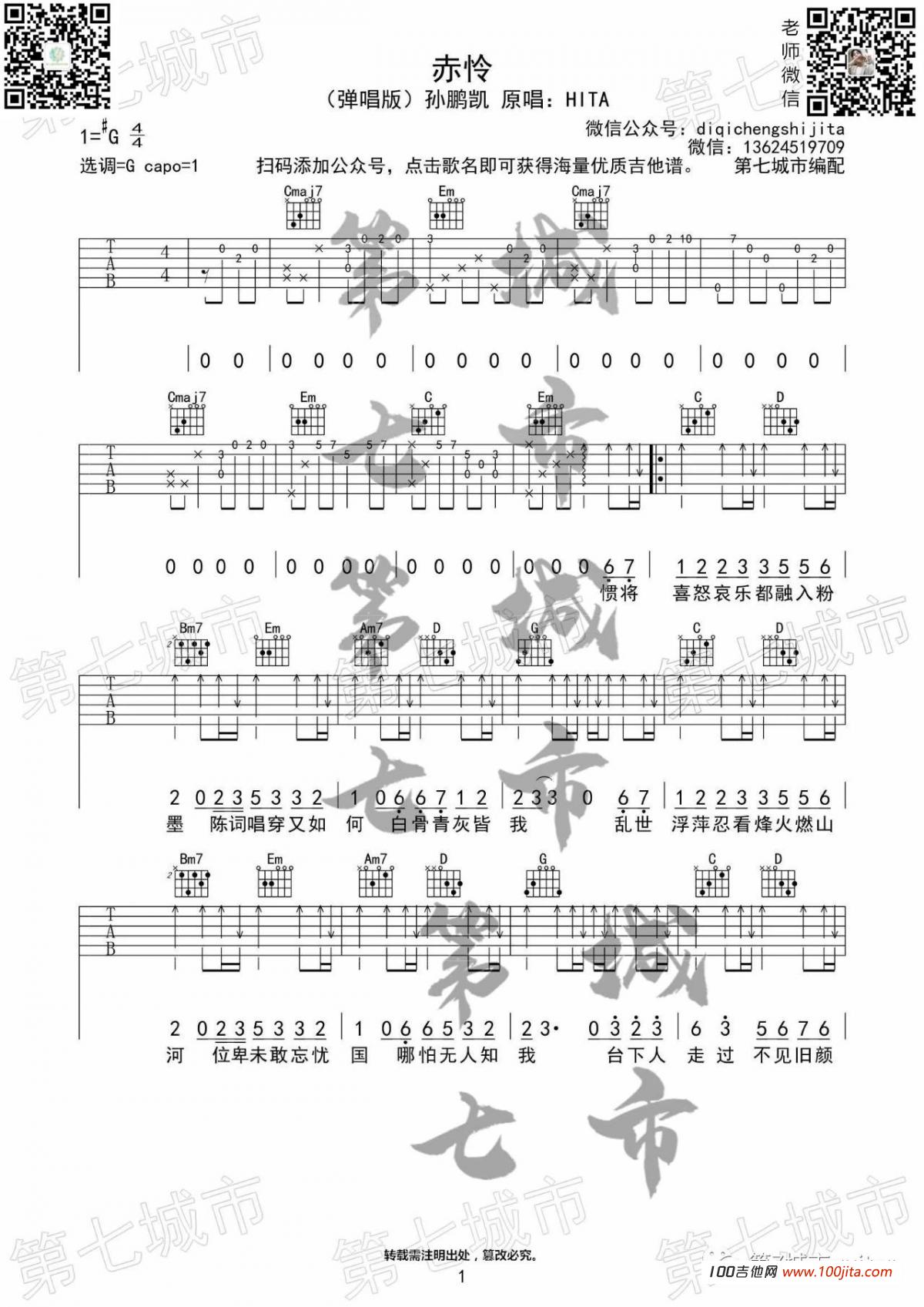 赤怜吉他谱 - 孙鹏凯 - C调吉他弹唱谱