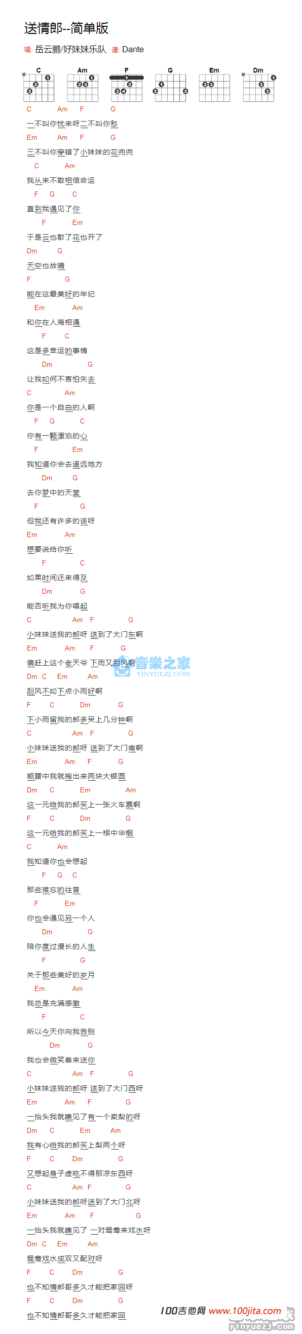 送情郎吉他谱 - 岳云鹏 - C调吉他弹唱谱