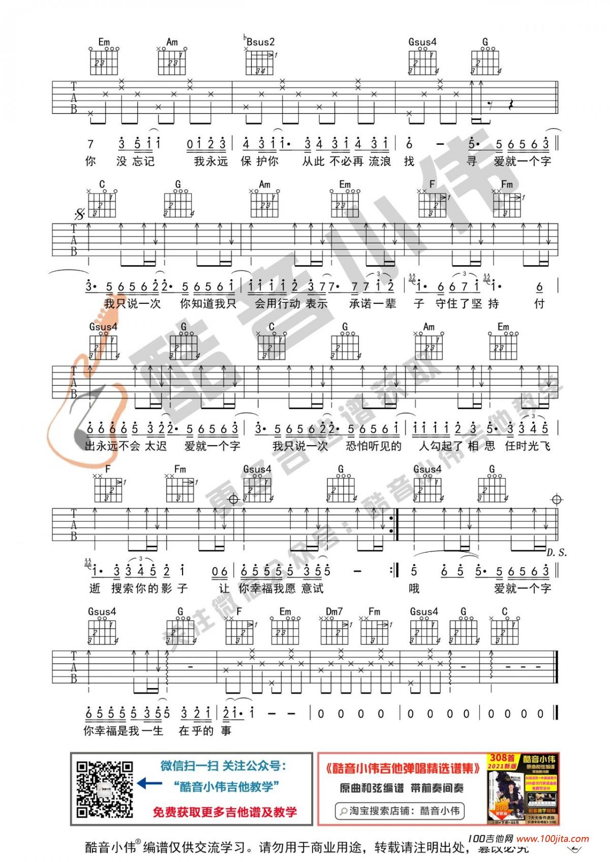 当前位置:琴谱网>吉他弹唱>爱就一个字
