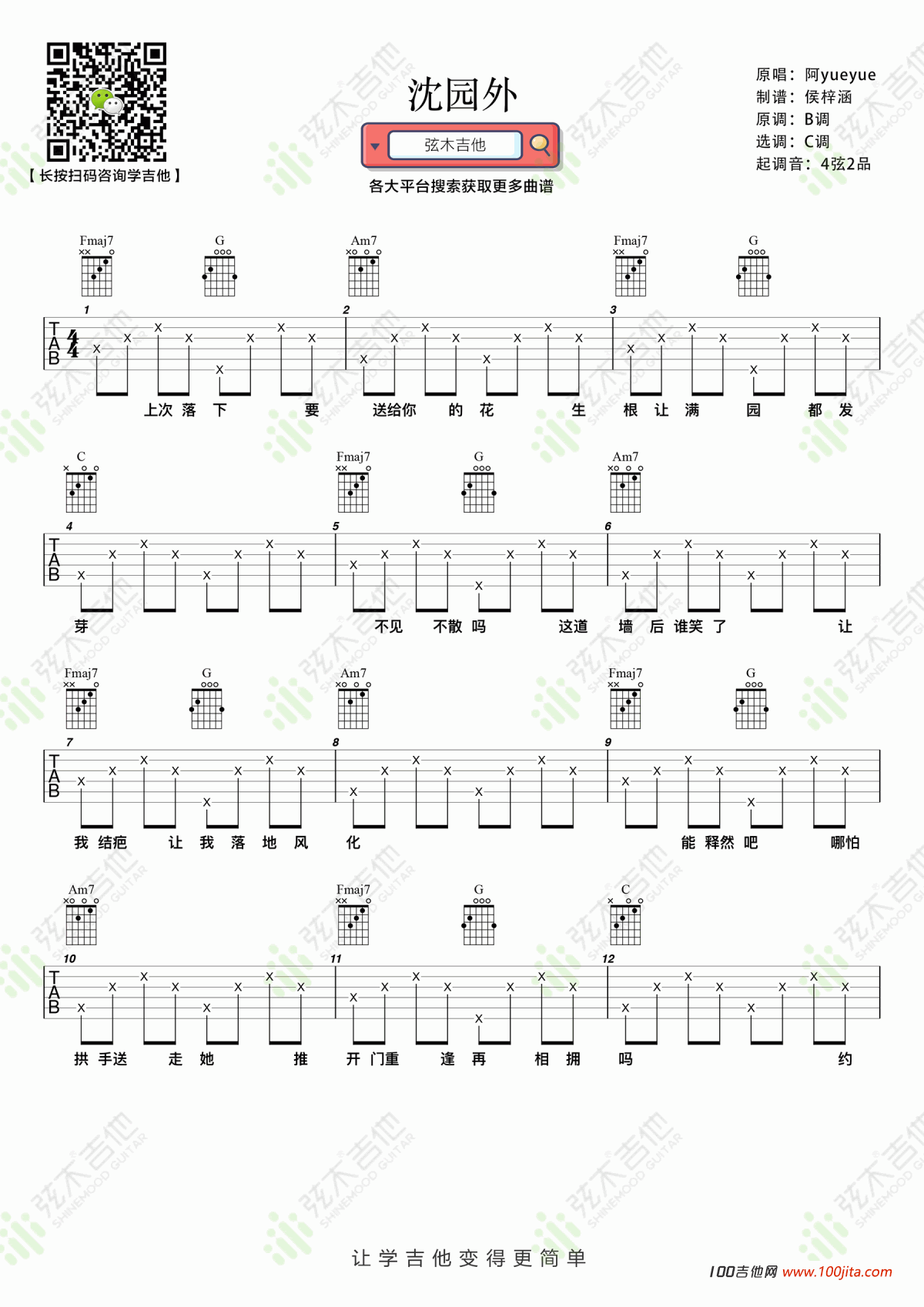 沈园外吉他谱 - 阿yueyue - C调吉他弹唱谱