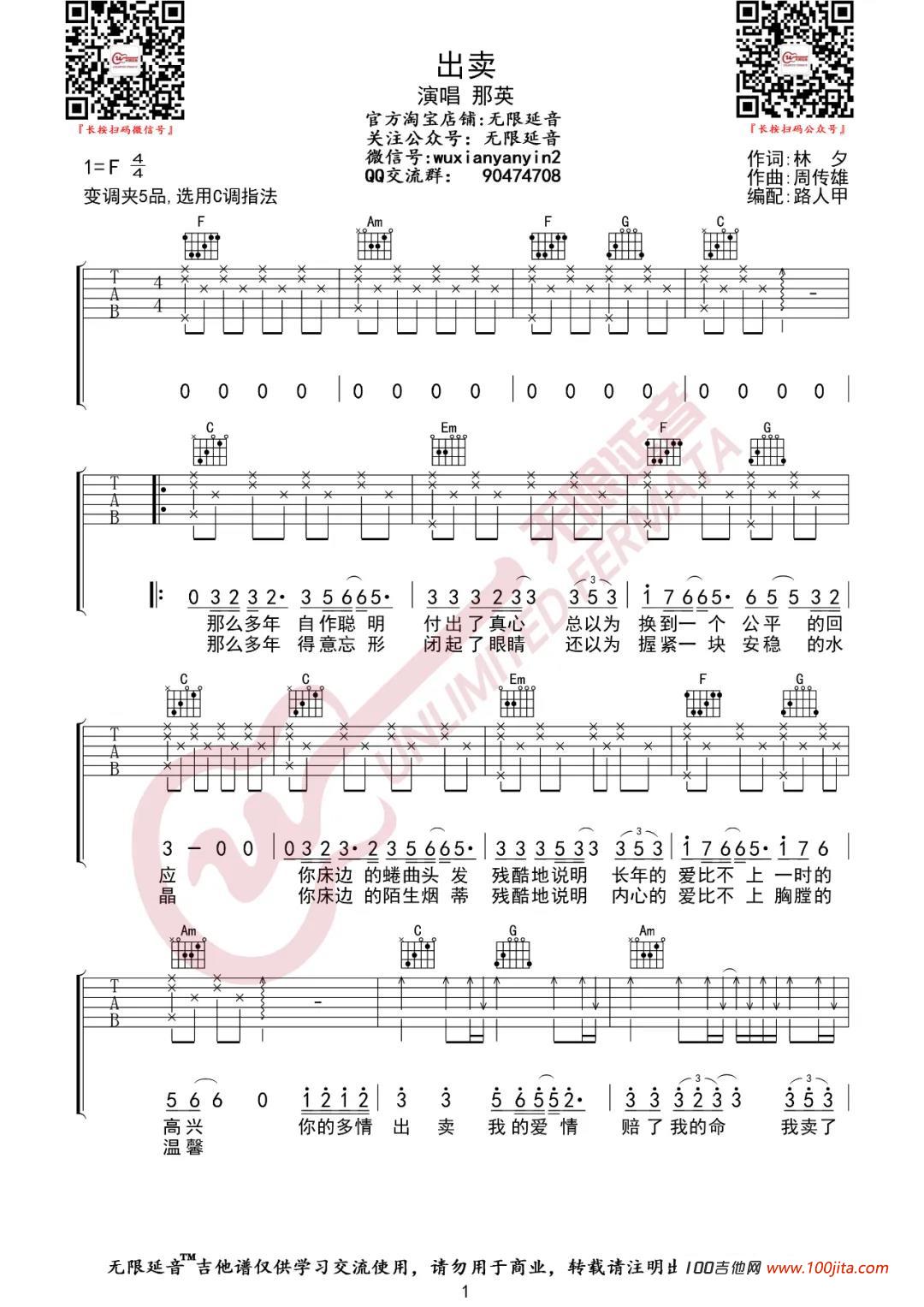 当前位置:琴谱网>吉他弹唱>出卖