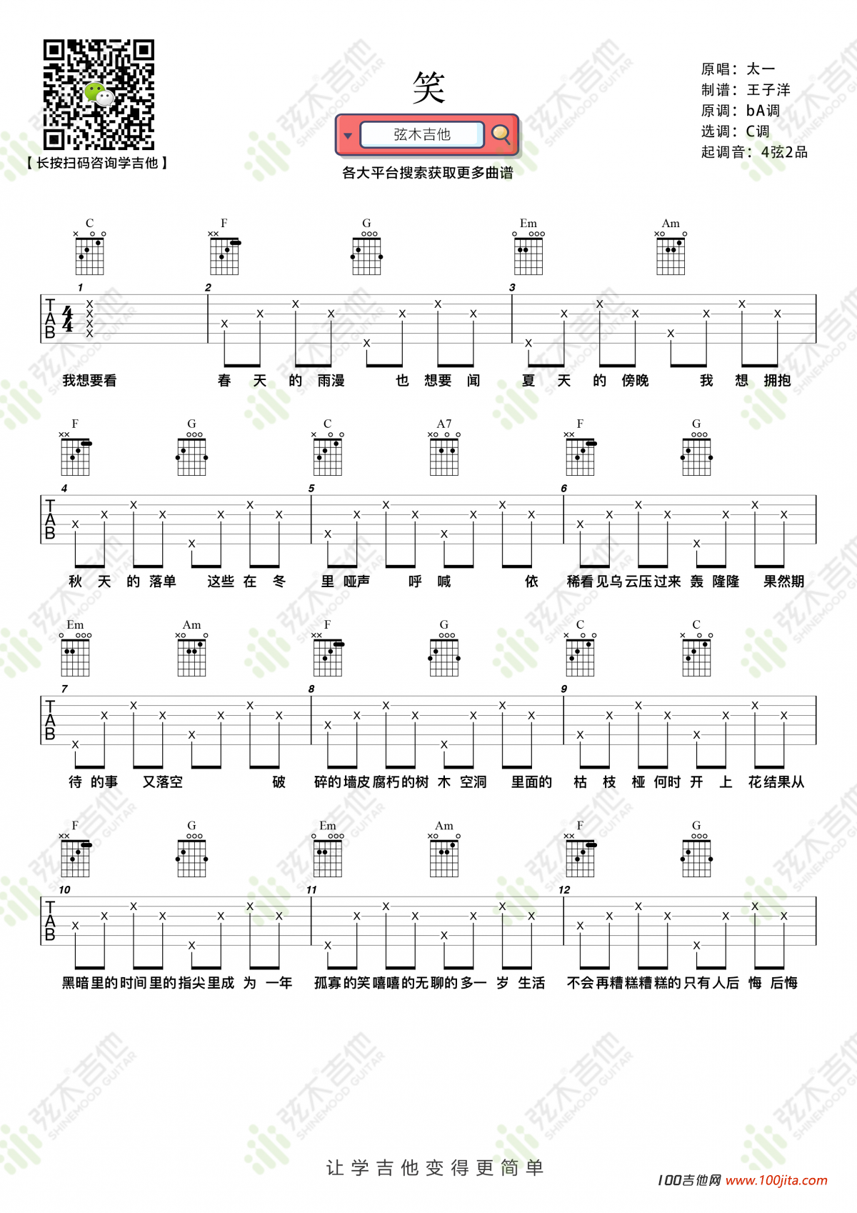 笑吉他谱 - 太一 - C调吉他弹唱谱