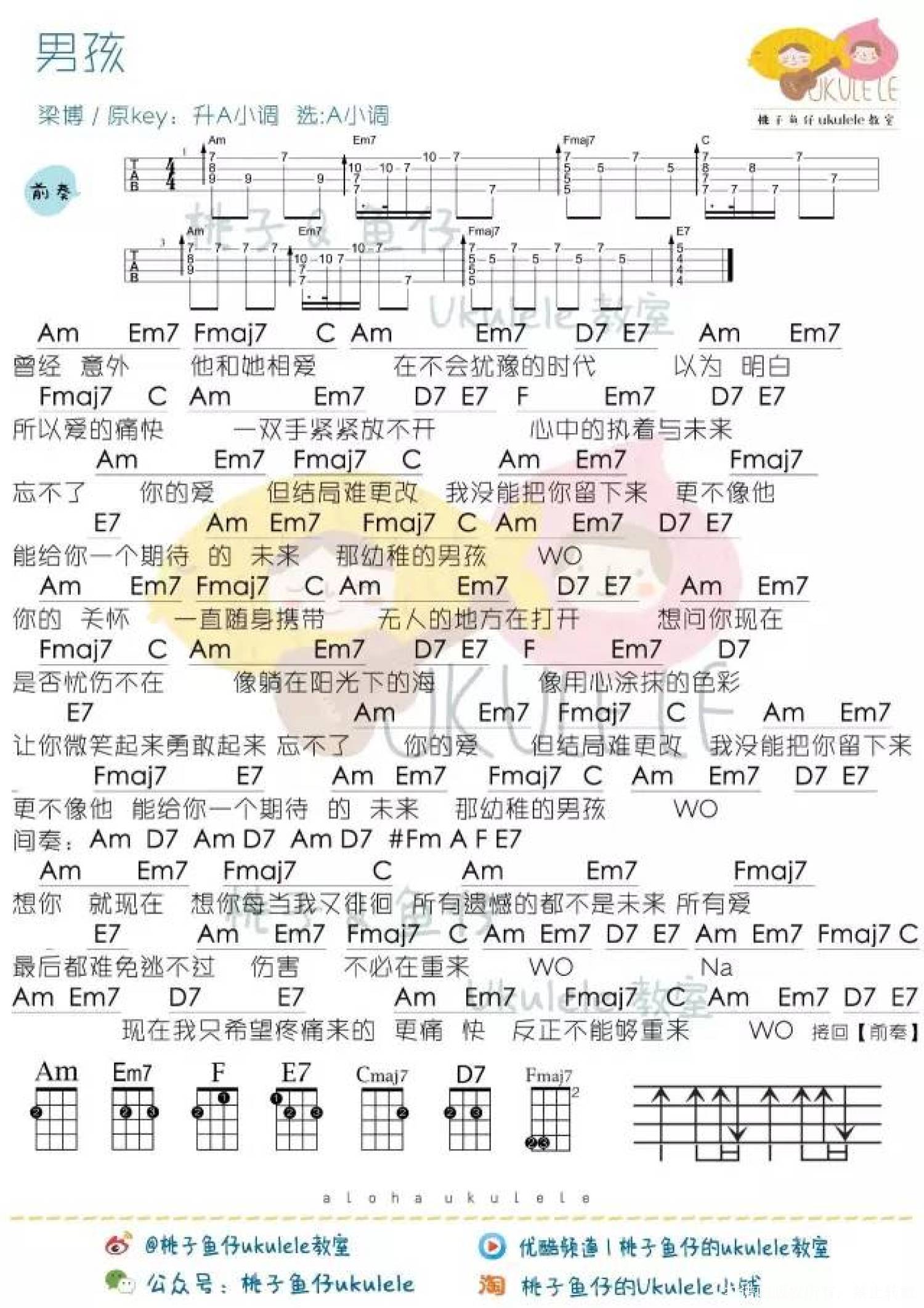曲谱介绍: 梁博《男孩》_尤克里里谱