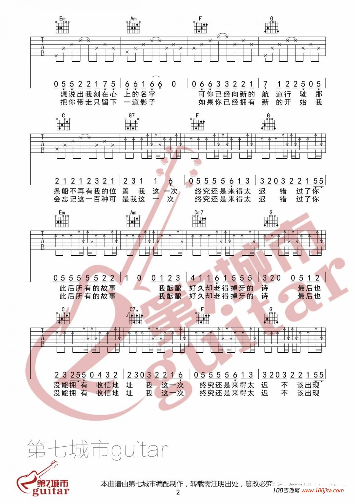 曲谱介绍: 来迟吉他谱是根据歌手戴羽彤的一首新歌编配的吉他谱。歌曲原调降E调,选用C调指法编配,变调夹夹三品。戴羽彤用自己独特的嗓音诠释了这首歌曲那种淡淡的伤感,喜欢的朋友收藏一下哦,琴谱网编辑整理。