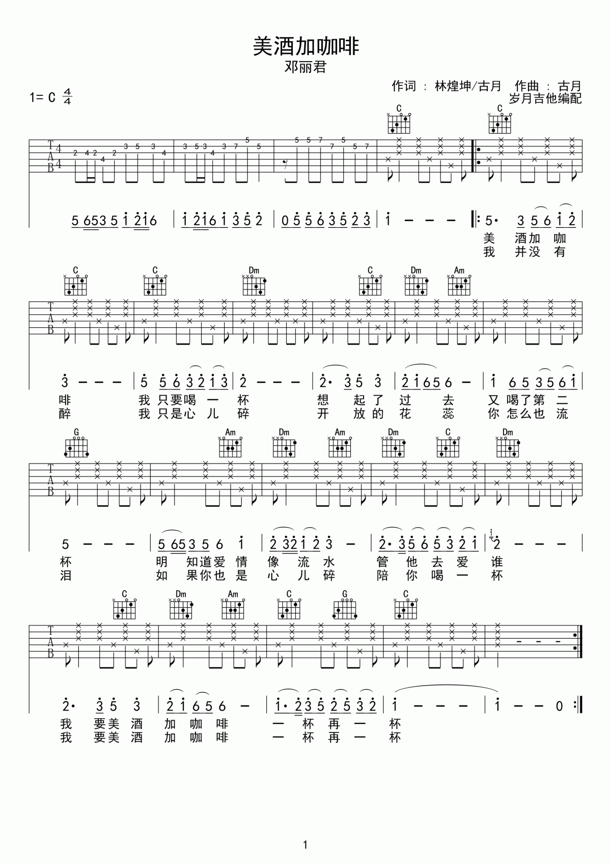 美酒加咖啡吉他谱 - 邓丽君 - C调吉他弹唱谱