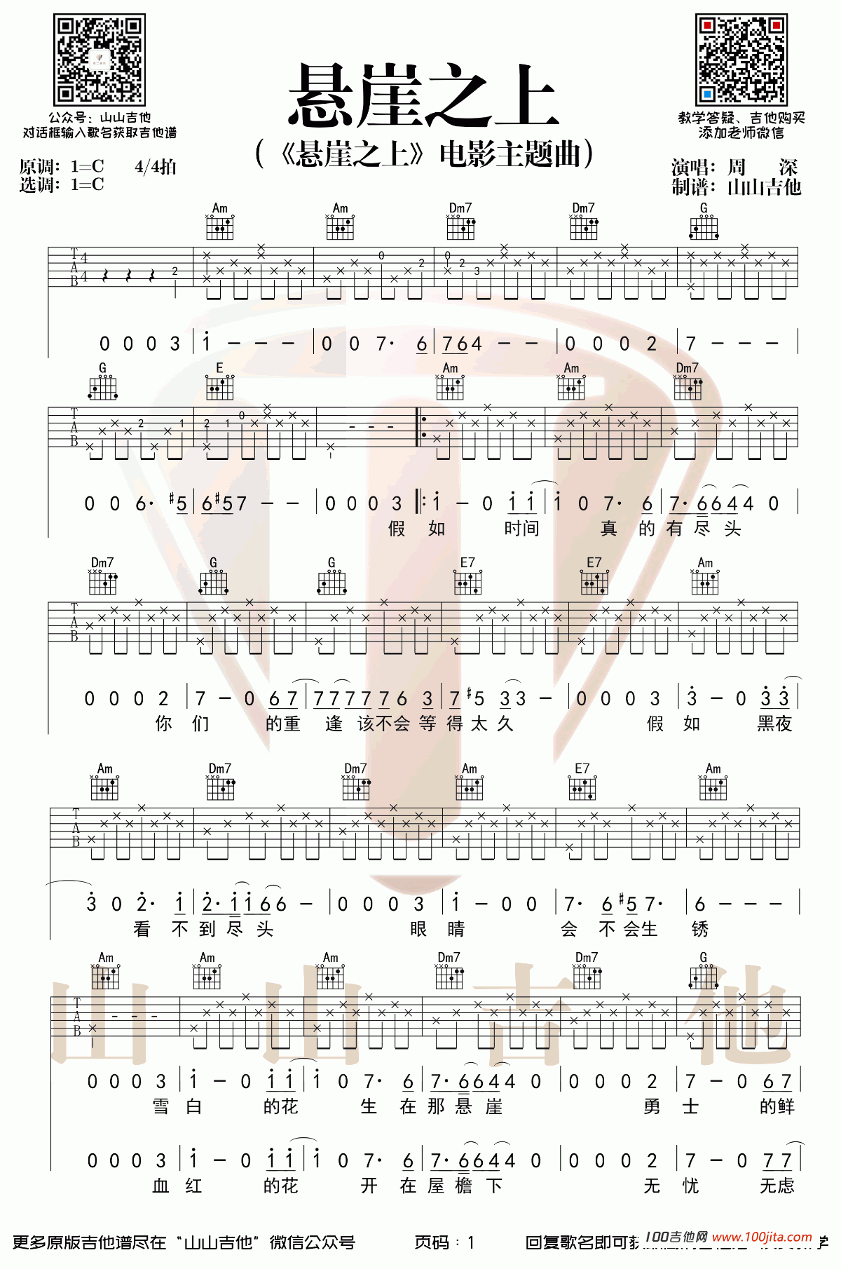 悬崖之上吉他谱 - 周深 - C调吉他弹唱谱