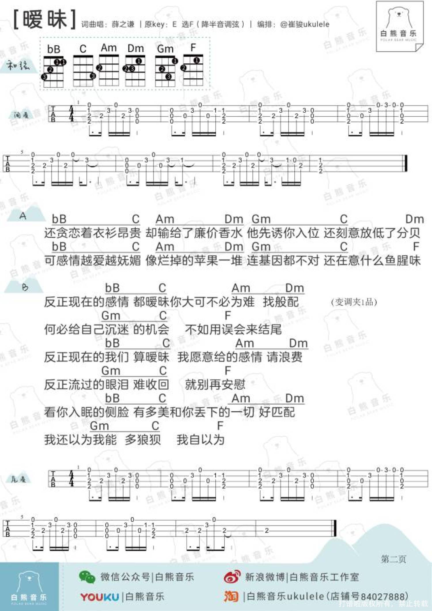 曲谱介绍: 薛之谦《暧昧》_C调尤克里里谱