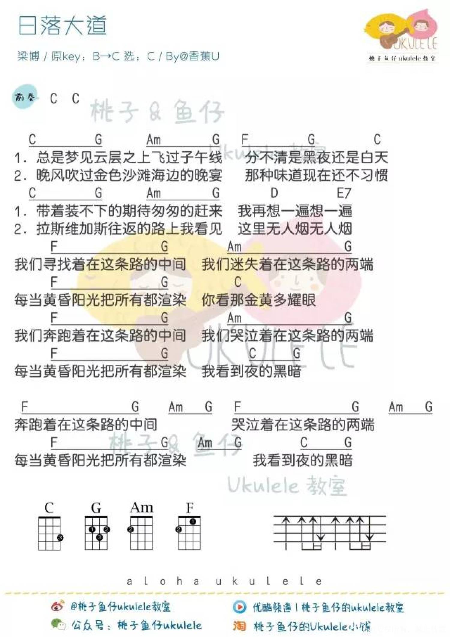 曲谱介绍: 梁博《日落大道》_C调尤克里里谱