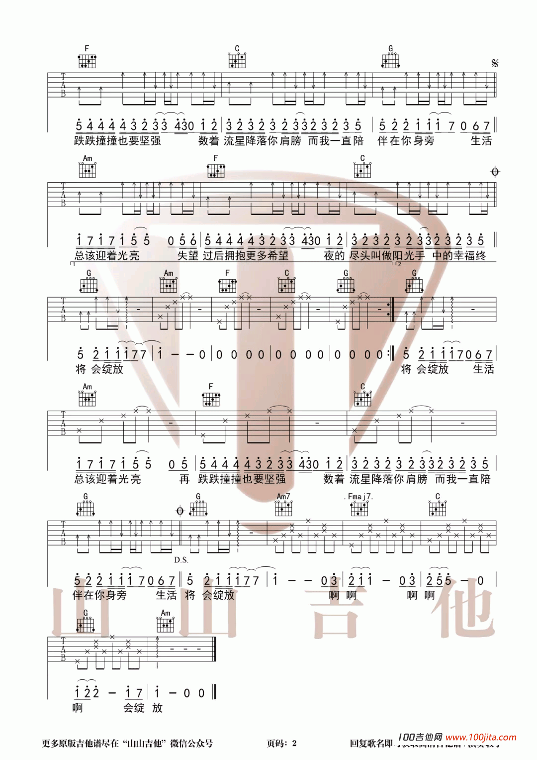 当前位置:琴谱网>吉他弹唱>生活总该迎着光亮