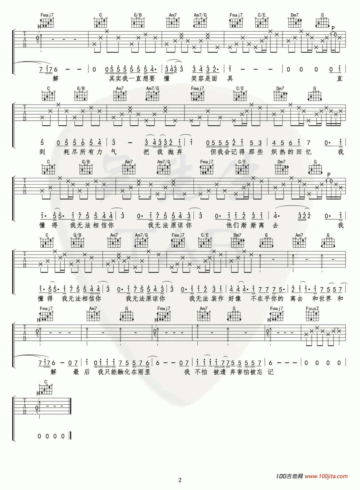 曲谱介绍: 《和世界和解》吉他弹唱谱,采用C调指法编配,共有2张高清图谱,免翻页排版设计。