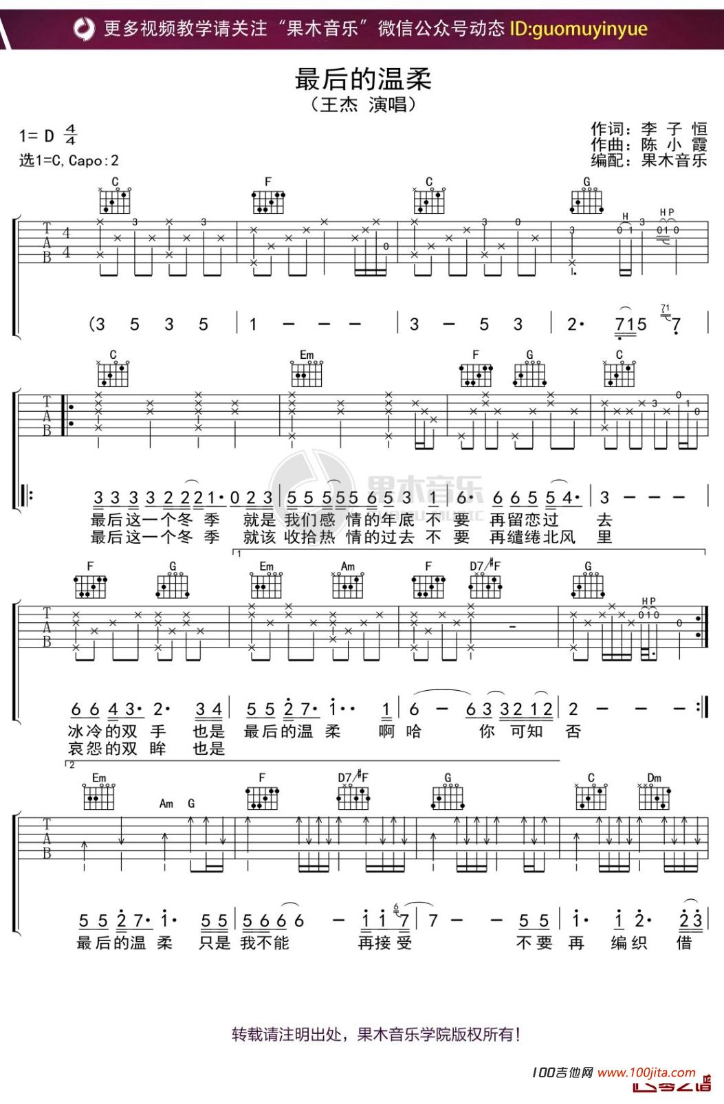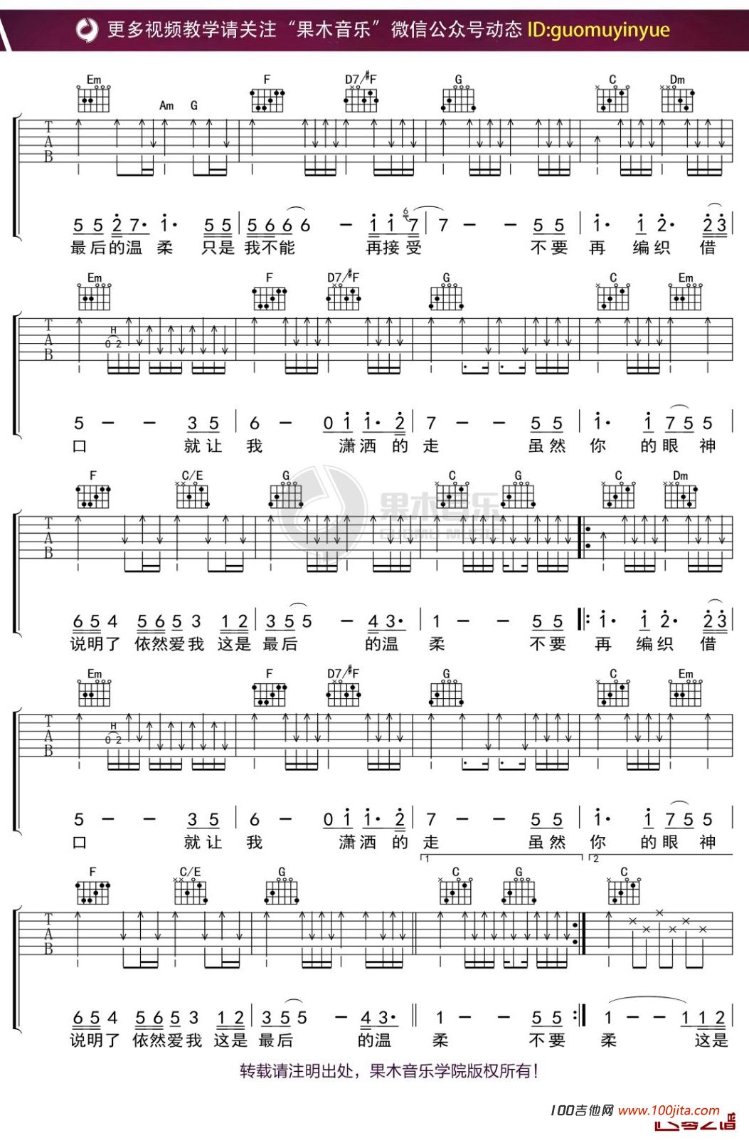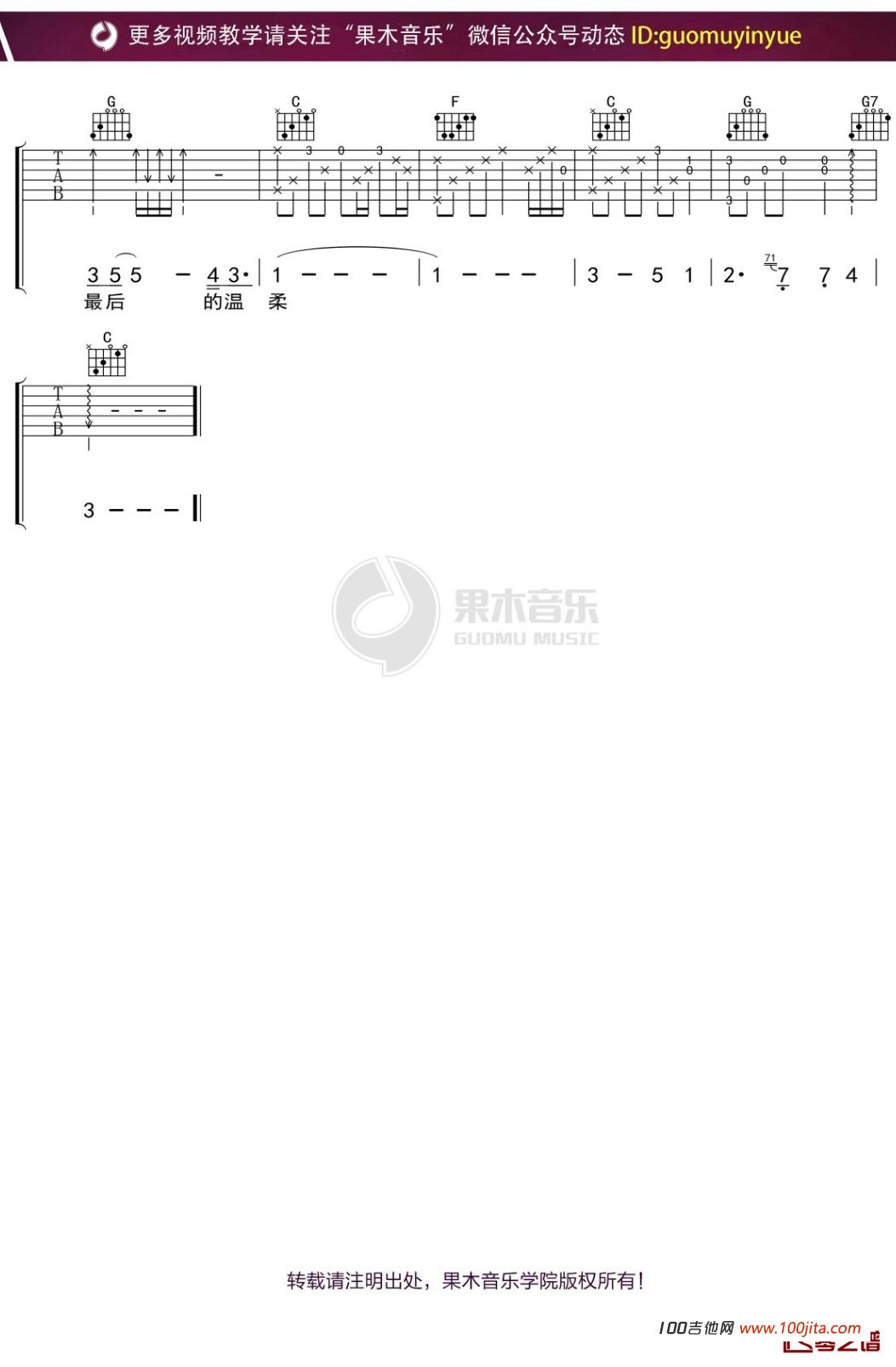 最后的温柔吉他谱 - C调吉他弹唱谱