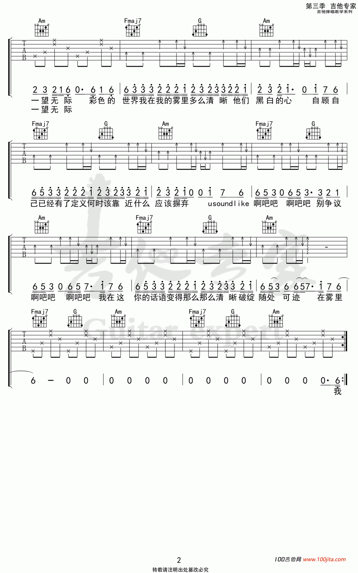 当前位置:琴谱网>吉他弹唱>雾里