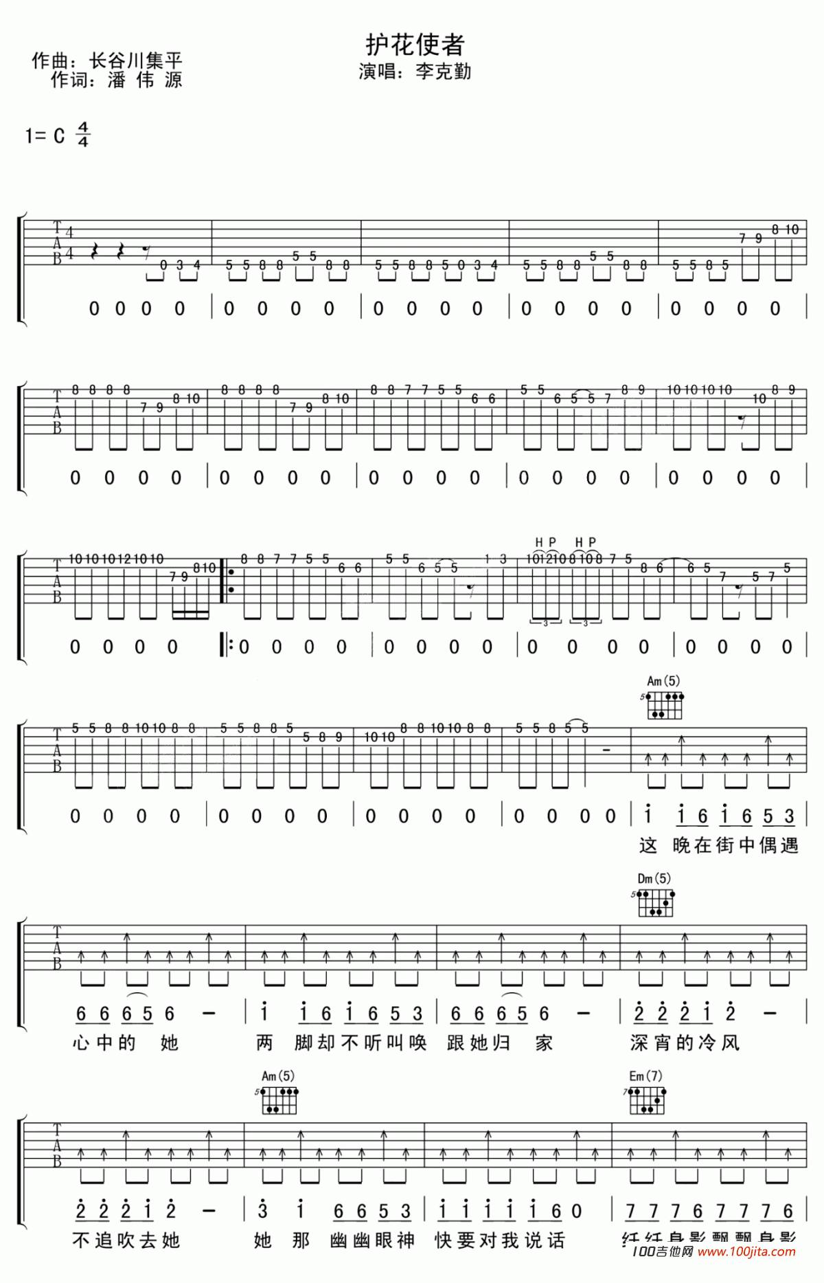 护花使者吉他谱 - 李克勤 - C调吉他弹唱谱