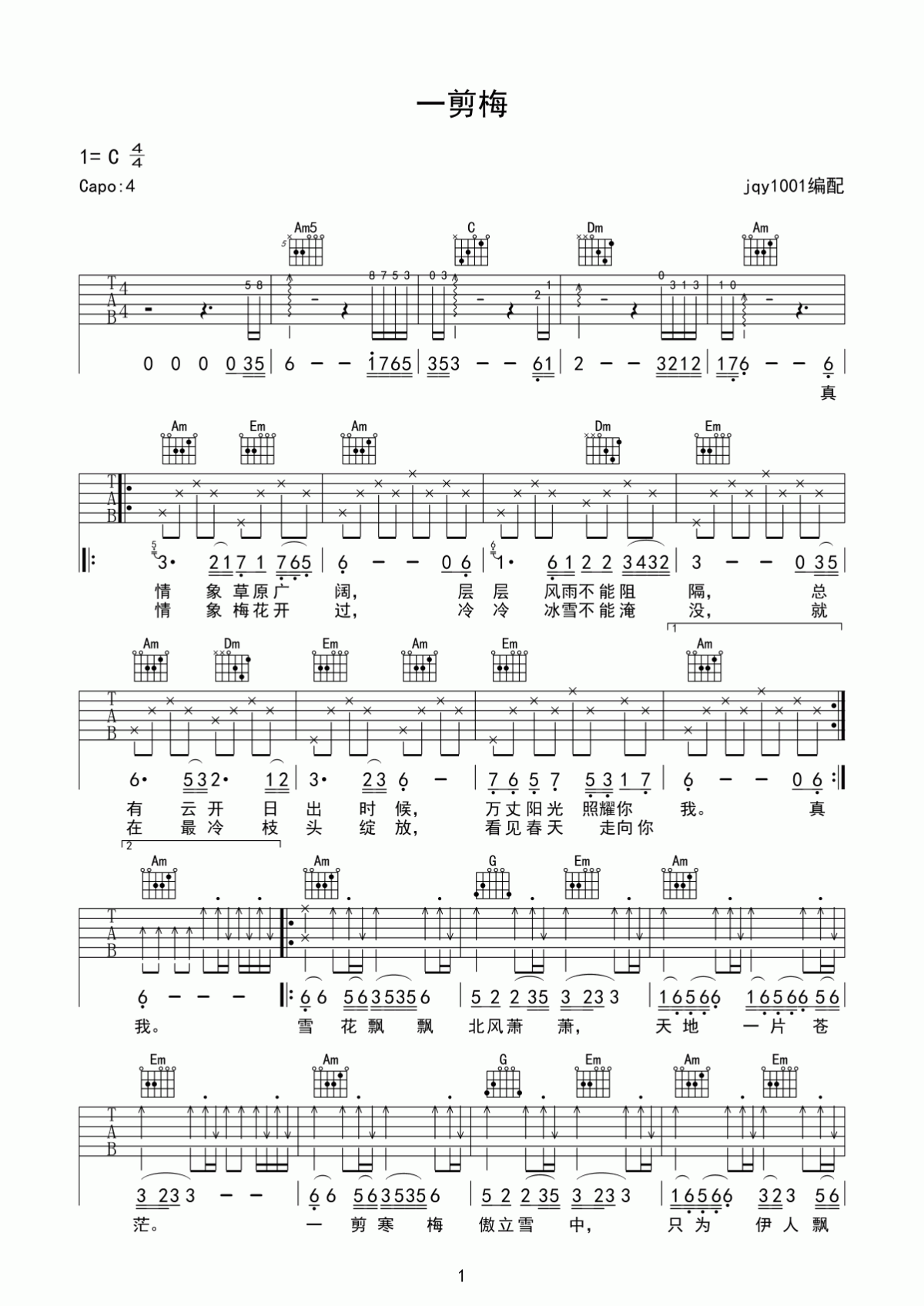 曲谱介绍: 一剪梅吉他谱_费玉清_《一剪梅》G调原版弹唱谱_高清六线谱分享。此歌曲是费玉清演唱的一首中国风格的经典歌曲,费玉清是公认为歌唱界的常青树,不光是出道时间长而且他的嗓音也是非常的透亮。这也是同名台湾电视连续剧《一剪梅》的开场曲,是经典老歌中的经典,经久传唱不朽。