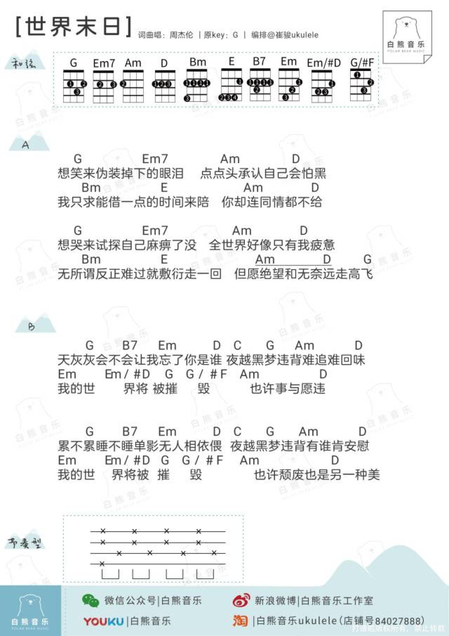 曲谱介绍: 周杰伦《世界末日》_G调尤克里里谱