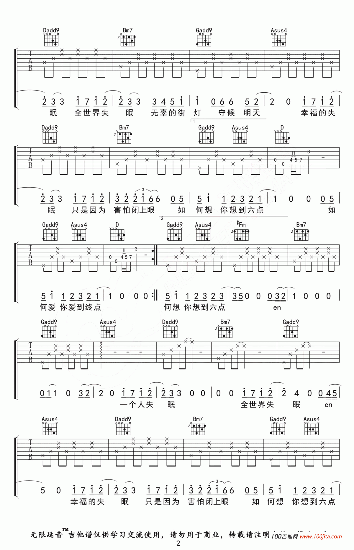 当前位置:琴谱网>吉他弹唱>全世界失眠