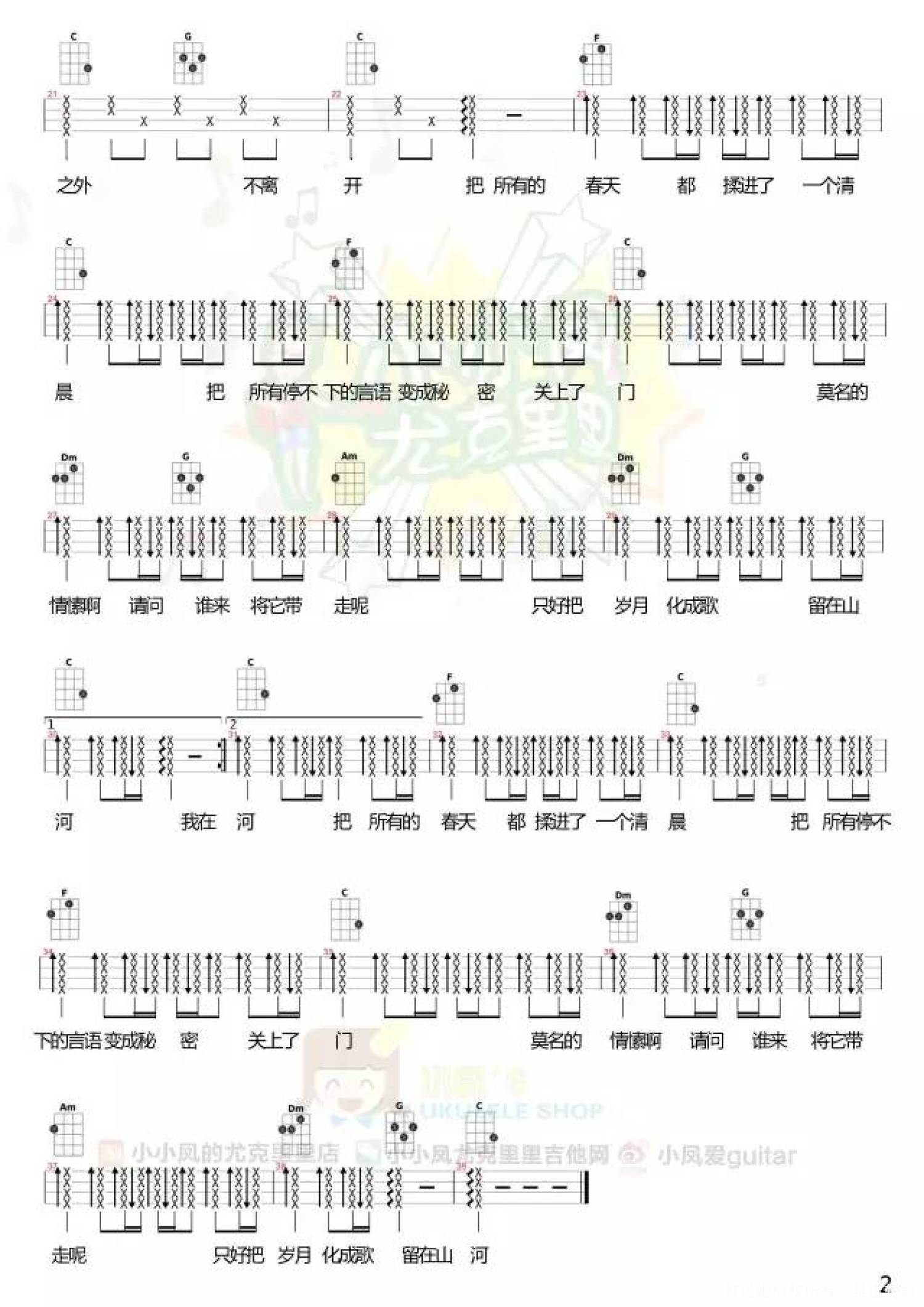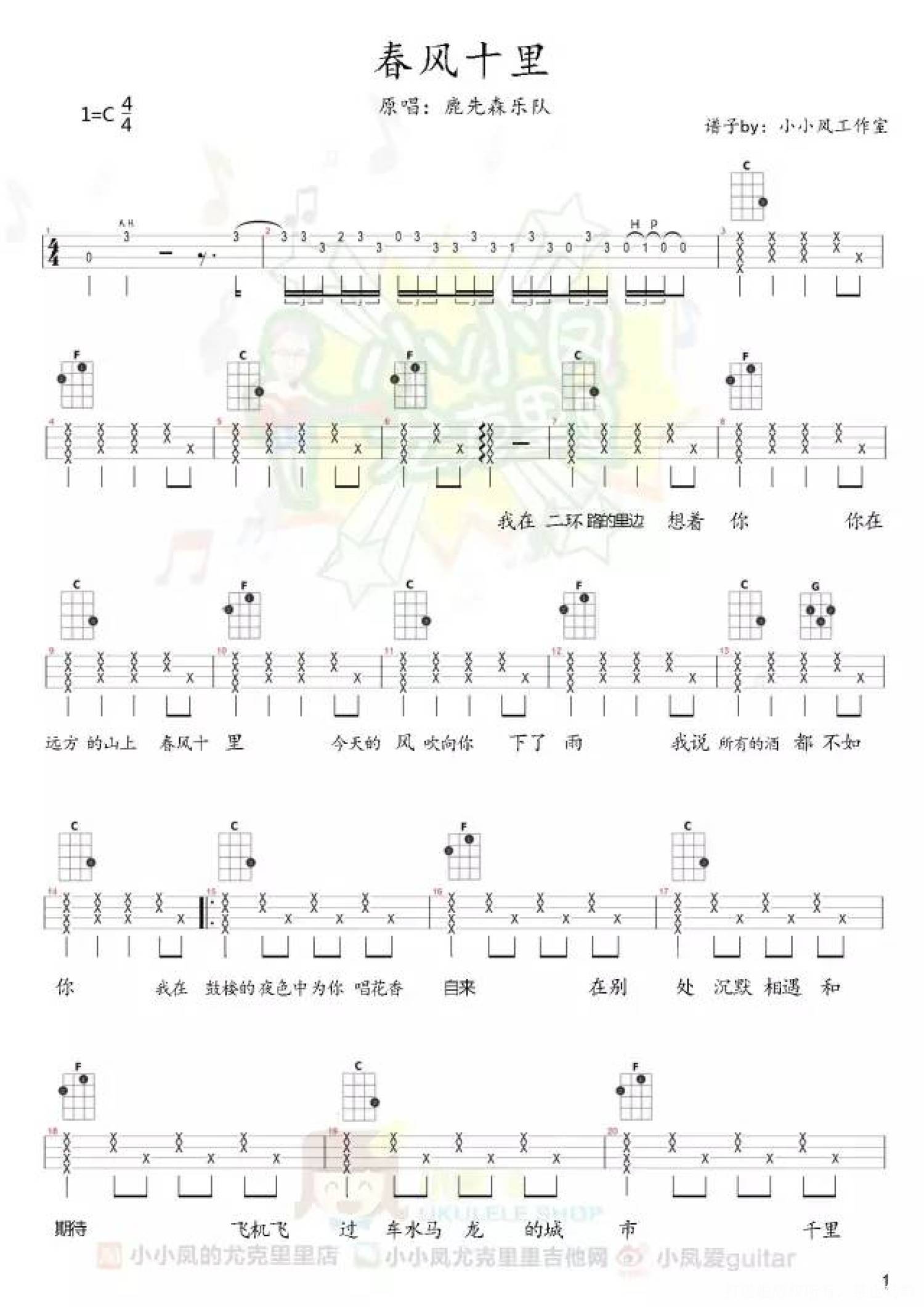 曲谱介绍: 鹿先森乐队《春风十里》_F调尤克里里谱