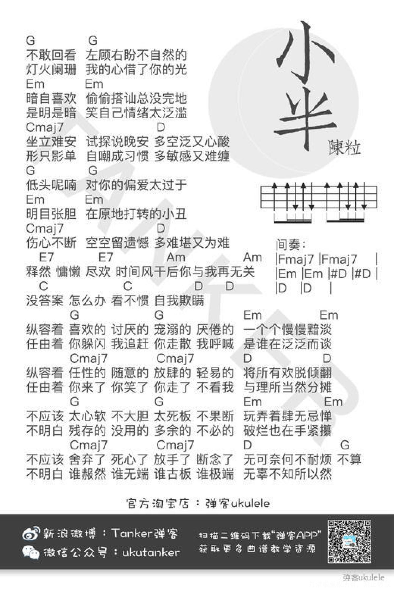 曲谱介绍: 陈粒《小半》_G调尤克里里谱