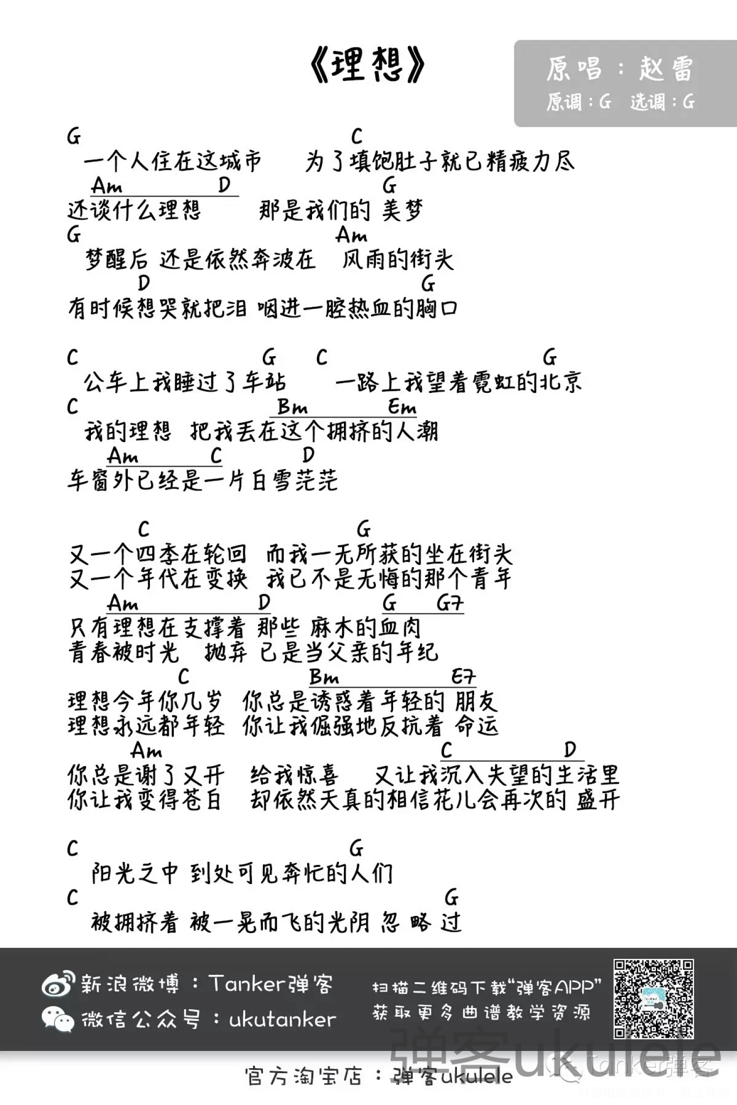 曲谱介绍: 赵雷《理想》_G调尤克里里谱