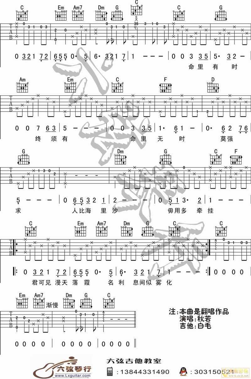 曲谱介绍: 许冠杰《浪子心声》吉他弹唱谱,采用C调指法编配,共有3张高清图谱。