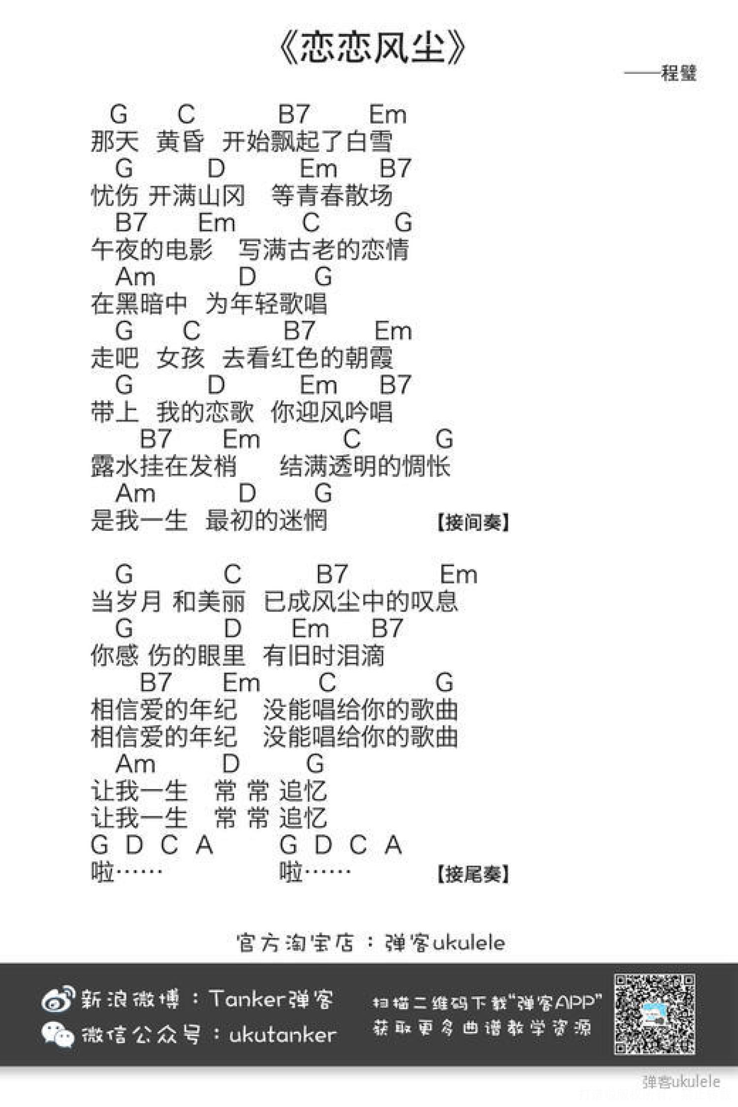 恋恋风尘尤克里里谱 - 程璧
