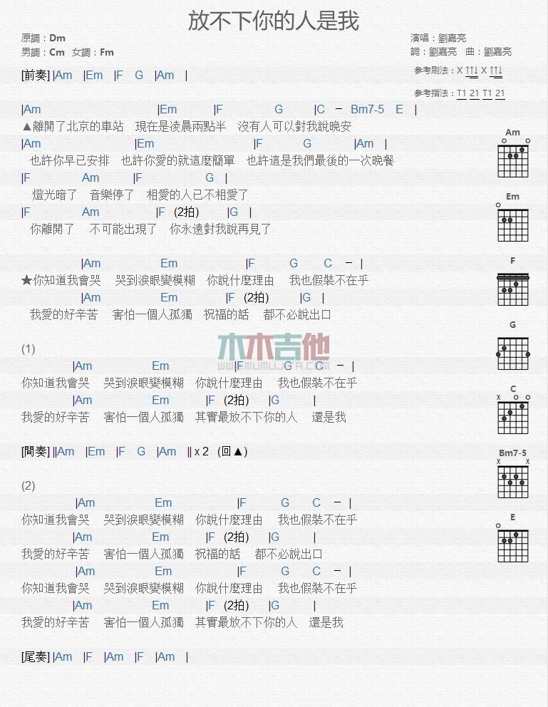 放不下你的人是我_吉他谱 - 放不下你的人是我 - 吉他弹唱谱