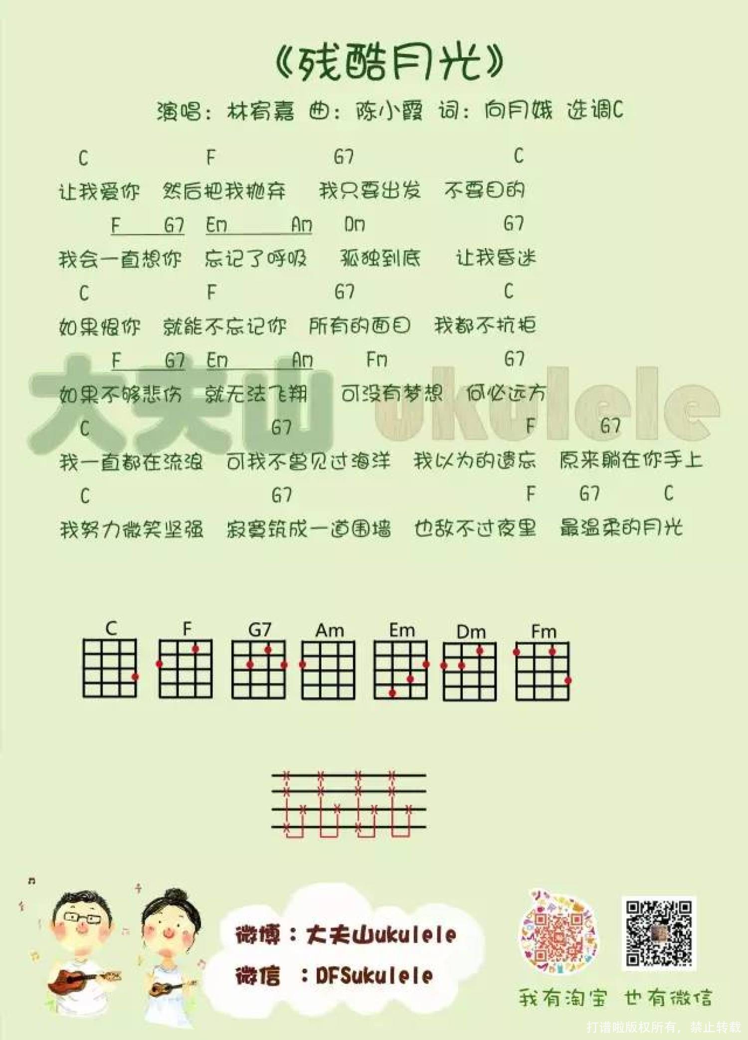 曲谱介绍: 林宥嘉《残酷月光》_C调尤克里里谱