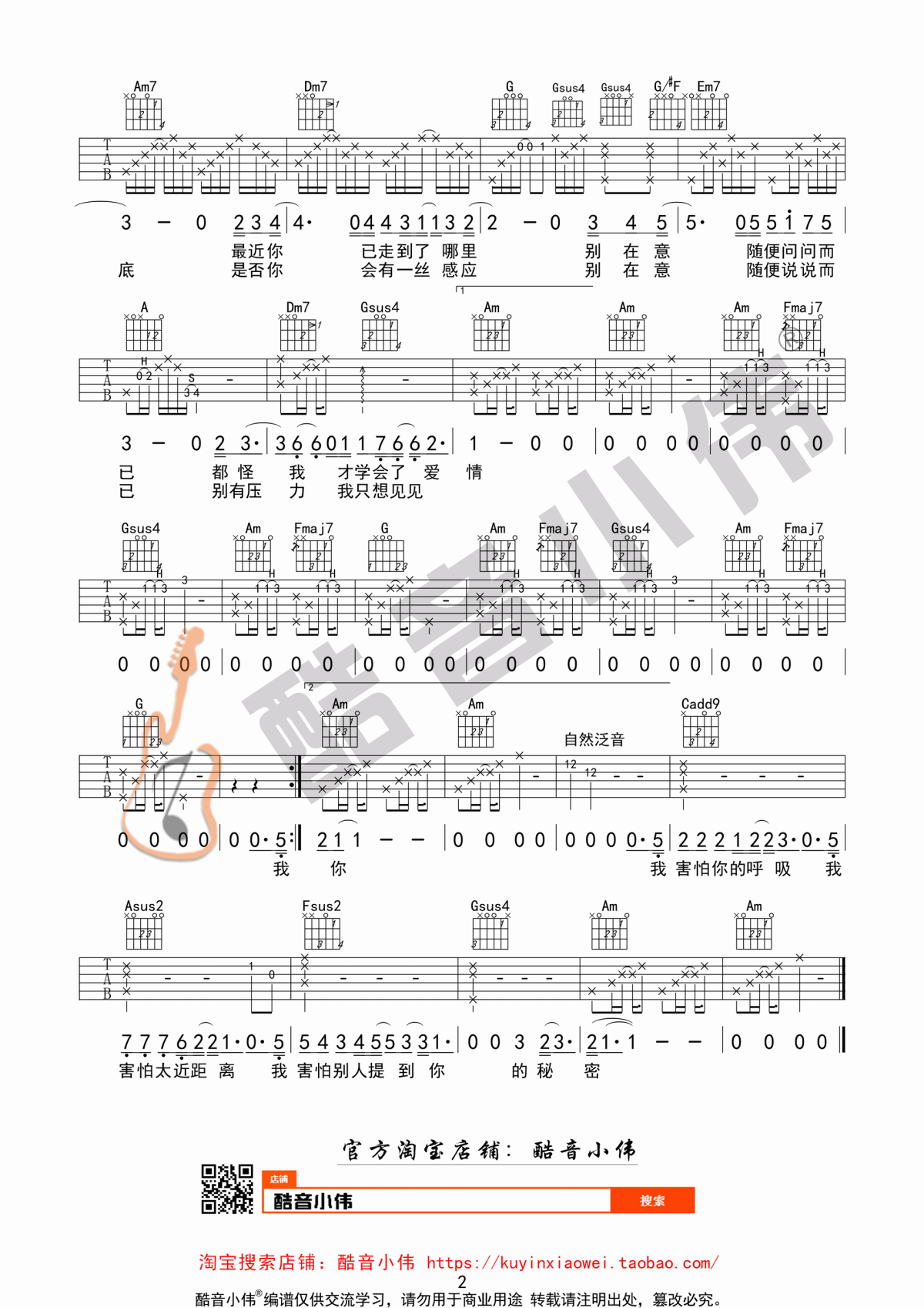 曲谱介绍: 薛之谦《我害怕》吉他弹唱谱,采用C调指法编配原版,共有2张高清图谱,免翻页排版设计。