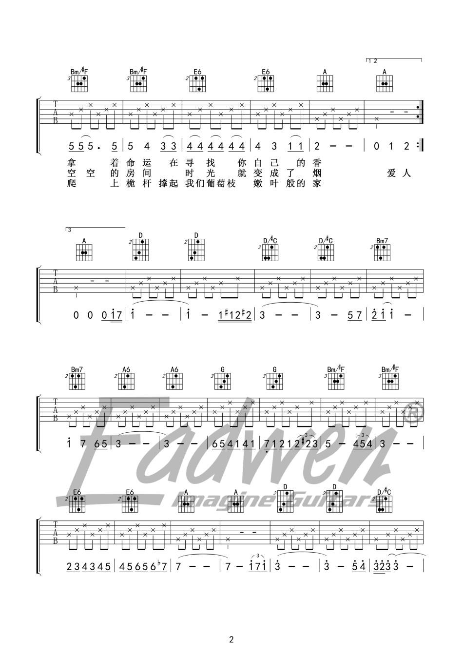 米店_D调吉他谱 - 米店 - D调吉他弹唱谱