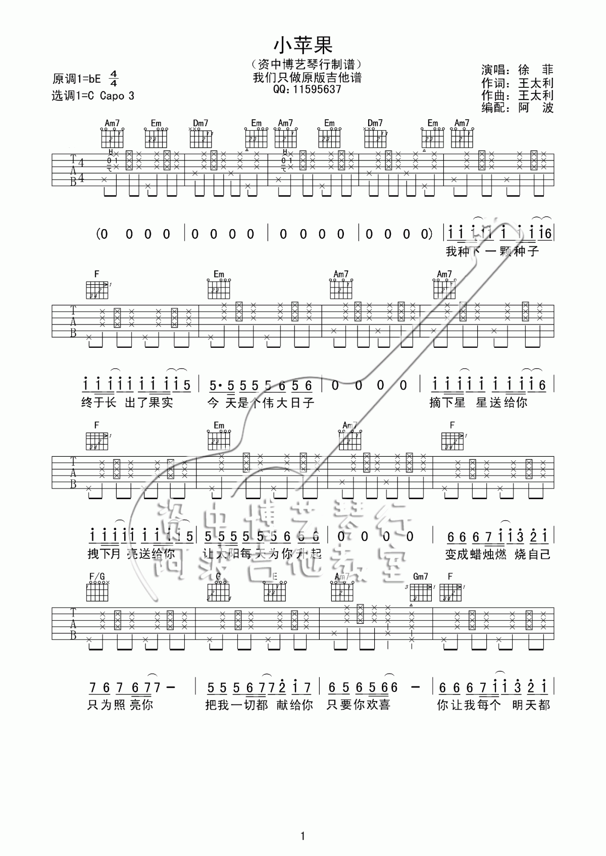 当前位置:琴谱网>吉他弹唱>小苹果