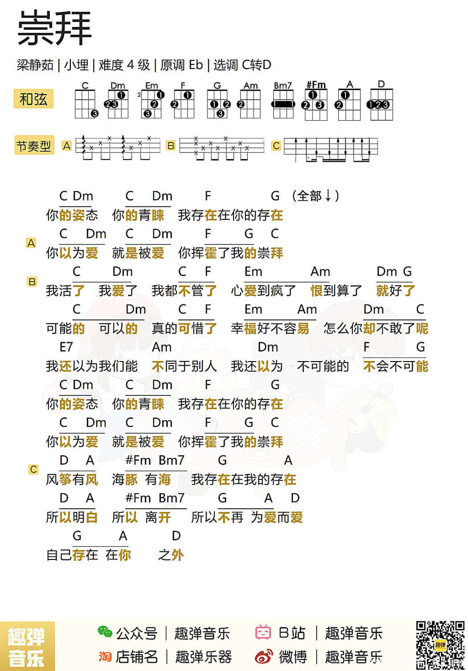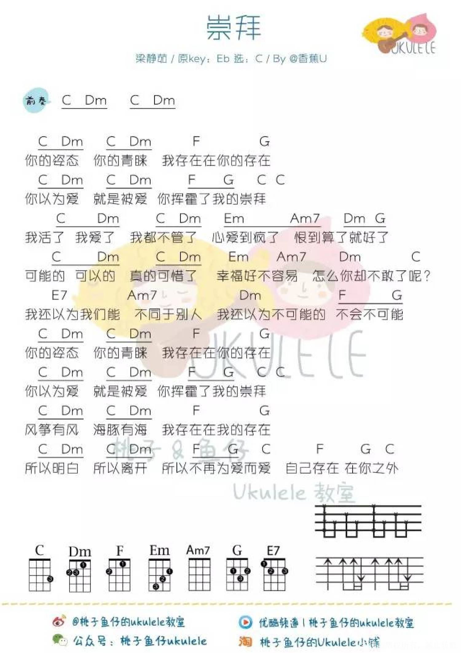 曲谱介绍: 梁静茹《崇拜》_C调尤克里里谱