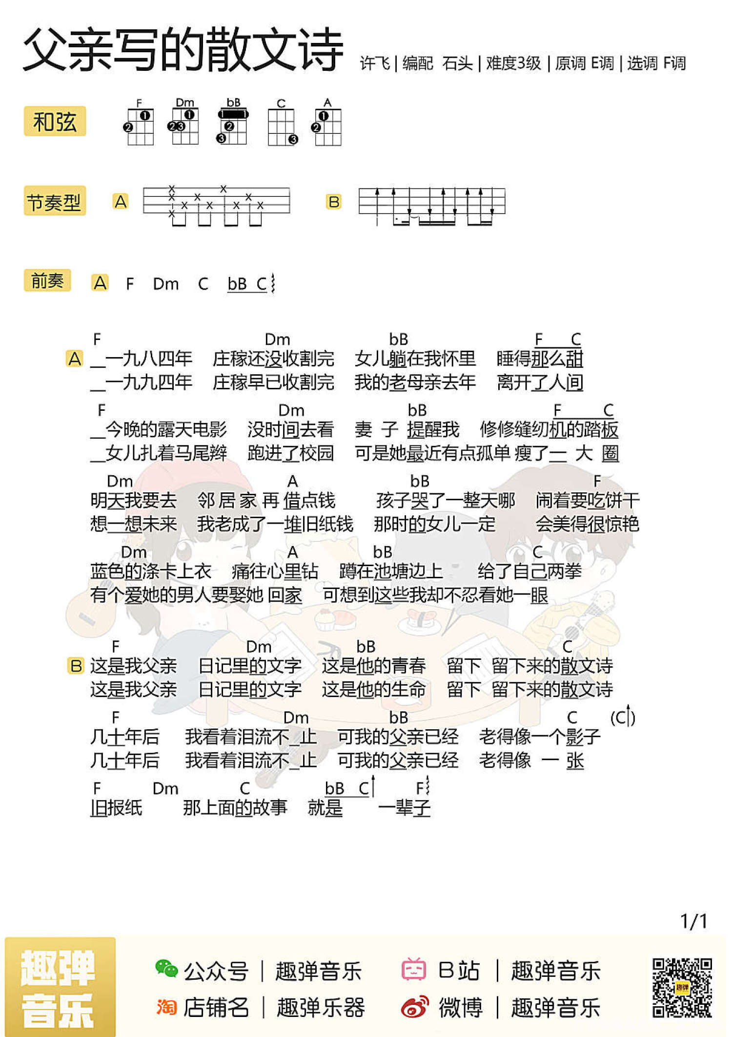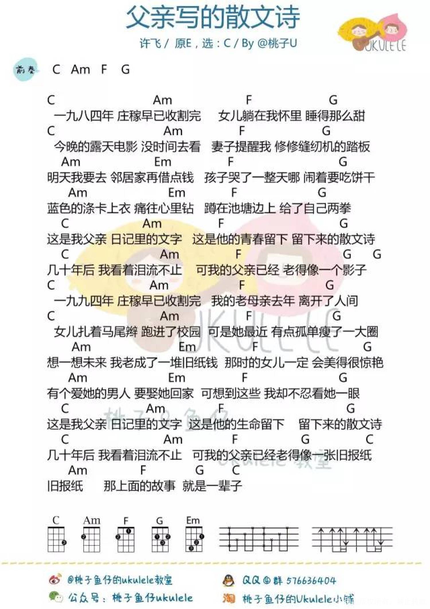 父亲写的散文诗尤克里里谱 - 许飞/李健