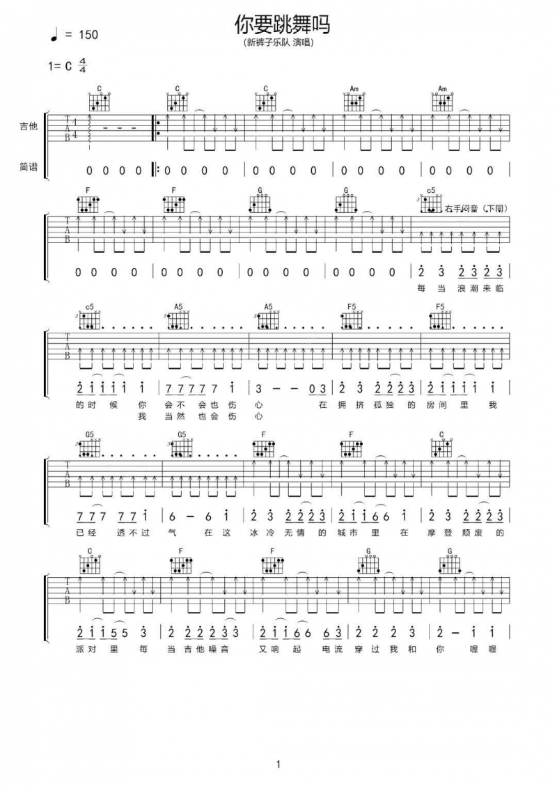 你要跳舞吗吉他谱 - 新裤子乐队 - C调吉他弹唱谱