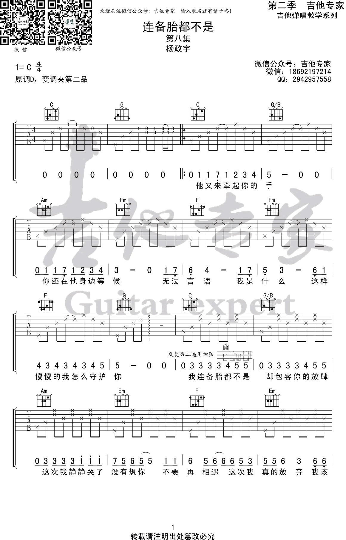 连备胎都不是吉他谱 - 杨政宇 - C调吉他弹唱谱