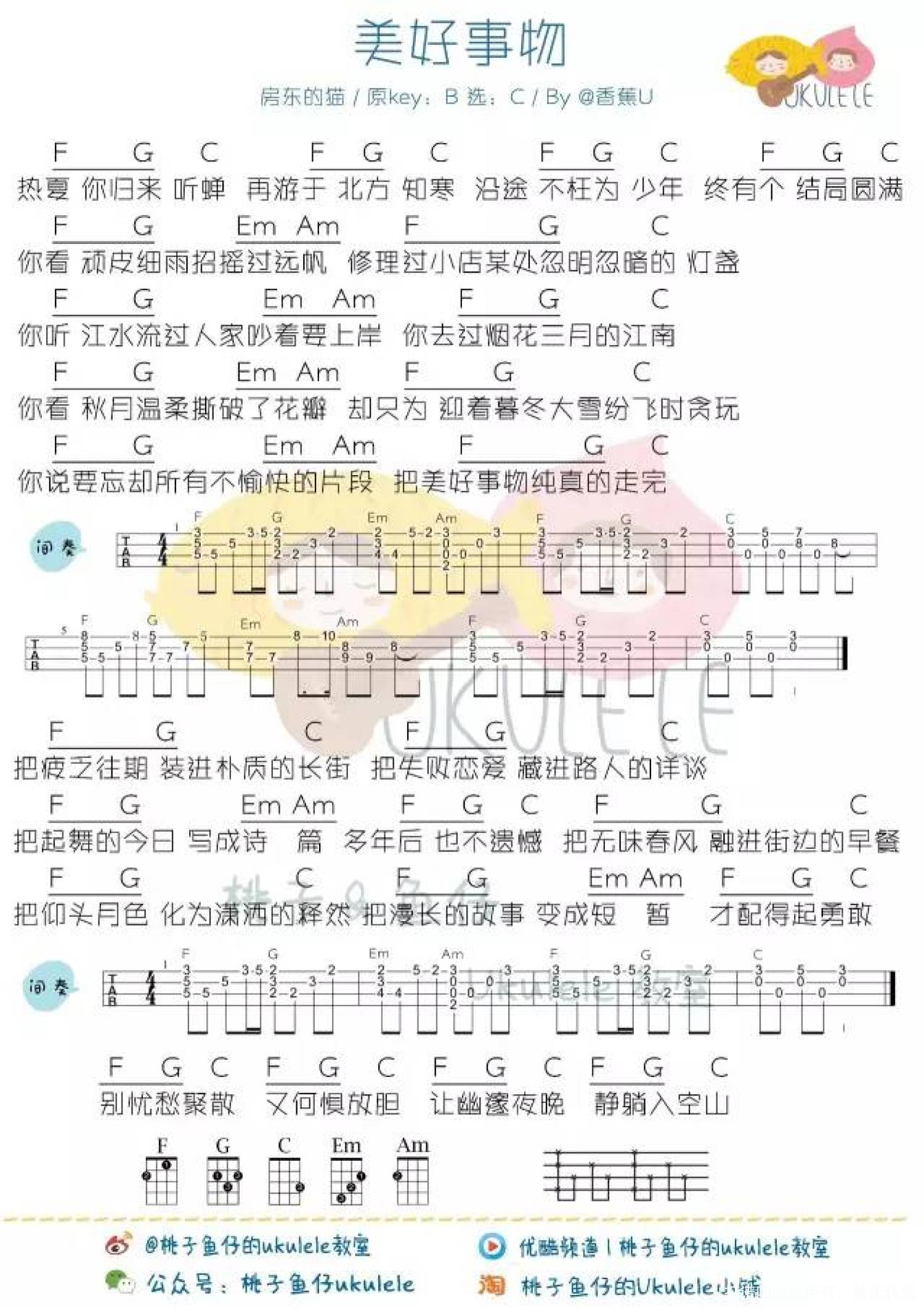 曲谱介绍: 房东的猫《美好事物》_C调尤克里里谱